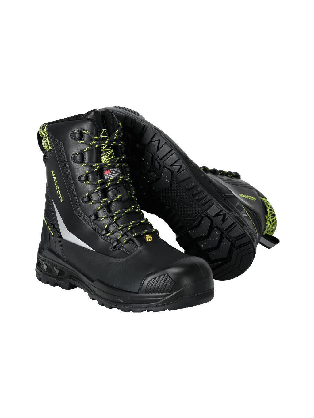 Krajkové zapínání. Kompozitová špička. Textilní ochrana proti pronikání nehtů MASCOLAYER®. Se stabilizačním multifunkčním kloubem s integrovanou komfortní pěnou. PU mezipodešev. Gumová podrážka s vložkami z třecí gumy. Stélky jsou vyměnitelné, antistatické a odolné proti opotřebení. Stélka tlumící nárazy. Vlhkost je absorbována a opět účinně uvolňována. Podrážka je odolná vůči olejům a benzínu. Podrážka je odolná vůči teplu až do 300 °C kontaktního tepla. Okraje podpatku. Izolační vnitřní podšívka se zateplením Thinsulate™. Voděodolná membrána z tkaniny MASCOTEX®. Vodoodpudivý a prodyšný svrchní materiál. Vhodné pro práci vkleče. Ochrana paty z TPU. Protiskluzová a samočistící podrážka zajišťuje stabilitu na všech površích. Neznačící podrážka - neodírá se.