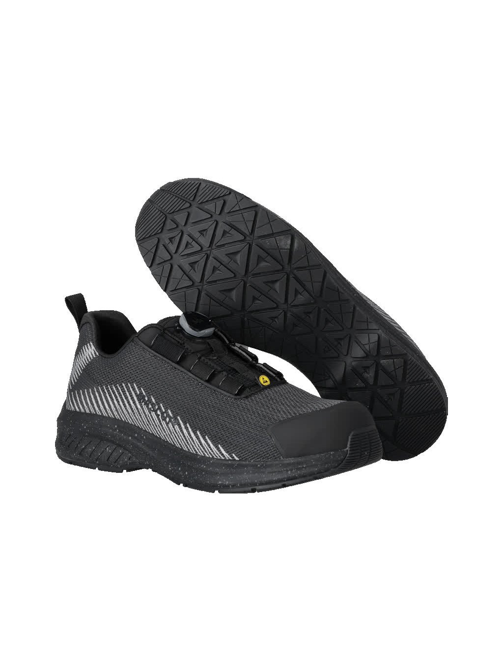 Přední část boty je extrémně flexibilní. Svršek je vyroben z odolného textilu. Zavírání a rozepínání pomocí systému BOA® Fit System, který se skládá z knoflíku, lanka a vodítek tkaniček. Kompozitová špička. Textilní ochrana proti pronikání nehtů MASCOLAYER®. Měkká a pružná stélka tlumící nárazy. Stélky jsou vyměnitelné. Lehká a pružná mezipodešev EVA tlumící nárazy. Ochrana paty z TPU. Ochrana špičky z TPU. PU podrážka. Podrážka je odolná vůči olejům a benzínu. ESD testováno v souladu s normami EN IEC 61340-4-3: 2018, EN 61340-5-1: 2016.