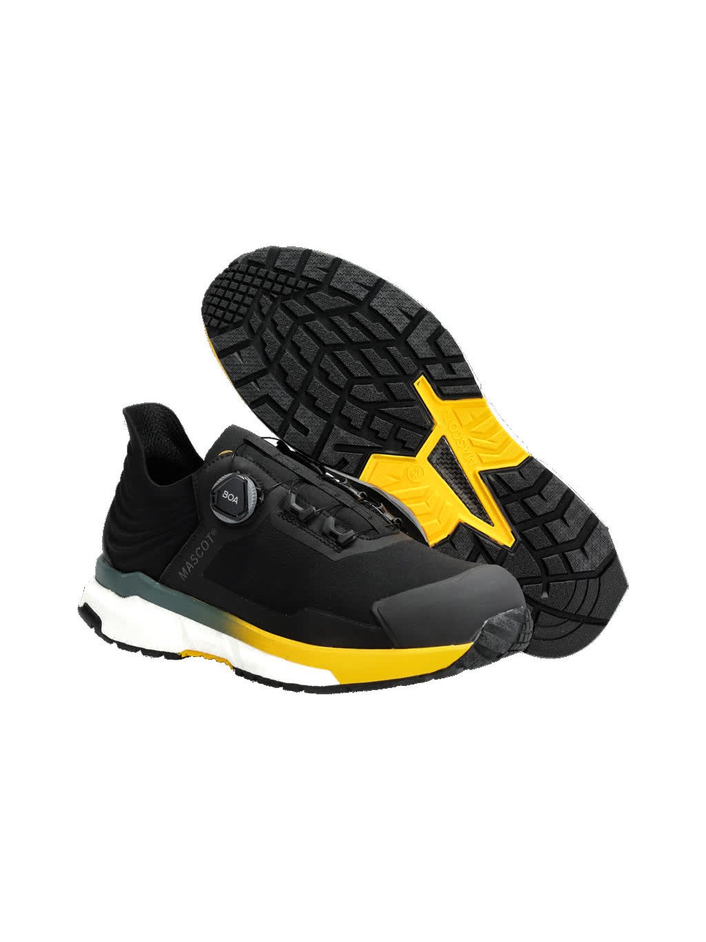 Přední část boty je extrémně flexibilní. Svršek je vyroben z odolného textilu. Zavírání a otevírání pomocí systému BOA® Fit System, který se skládá z otočného knoflíku, lana a vodítek tkaniček. Pata je z vnitřní strany vystlána paměťovou pěnou. Kompozitová špička. Textilní ochrana proti pronikání nehtů MASCOLAYER®. Měkká a pružná stélka tlumící nárazy. Stélky jsou vyměnitelné. Mezipodešev z eTPU a EVA. Zvýšená návratnost energie díky integrované karbonové destičce v mezipodešvi. Ochrana paty z TPU. Ochrana špičky z TPU. Gumová podrážka s 3D potiskem vzoru. Podrážka je odolná vůči olejům a benzínu. ESD testováno v souladu s normami EN IEC 61340-4-3: 2018, EN 61340-5-1: 2016.