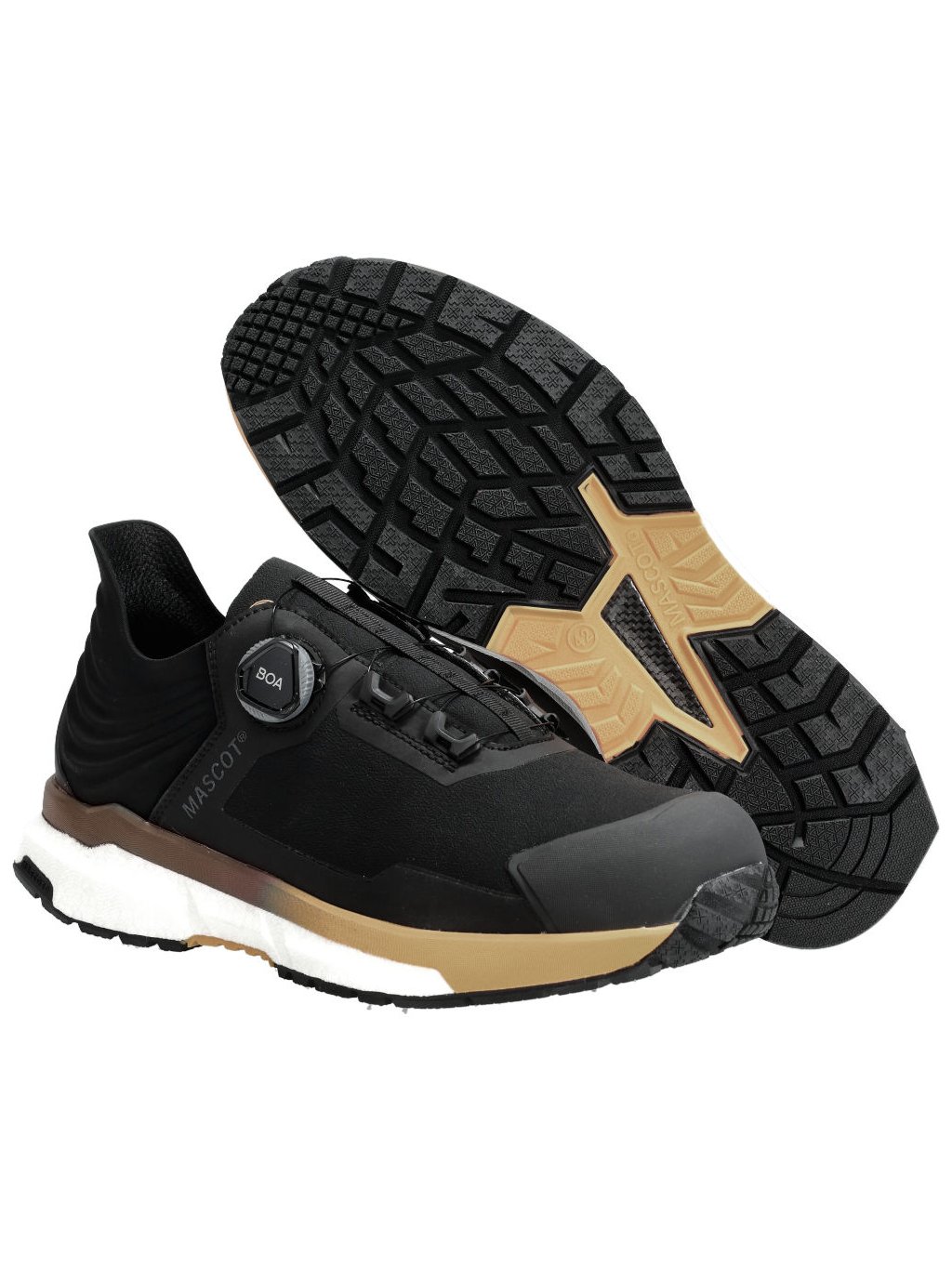 Přední část boty je extrémně flexibilní. Svršek je vyroben z odolného textilu. Zavírání a otevírání pomocí systému BOA® Fit System, který se skládá z otočného knoflíku, lana a vodítek tkaniček. Pata je z vnitřní strany vystlána paměťovou pěnou. Kompozitová špička. Textilní ochrana proti pronikání nehtů MASCOLAYER®. Měkká a pružná stélka tlumící nárazy. Stélky jsou vyměnitelné. Mezipodešev z eTPU a EVA. Zvýšená návratnost energie díky integrované karbonové destičce v mezipodešvi. Ochrana paty z TPU. Ochrana špičky z TPU. Gumová podrážka s 3D potiskem vzoru. Podrážka je odolná vůči olejům a benzínu. ESD testováno v souladu s normami EN IEC 61340-4-3: 2018, EN 61340-5-1: 2016.