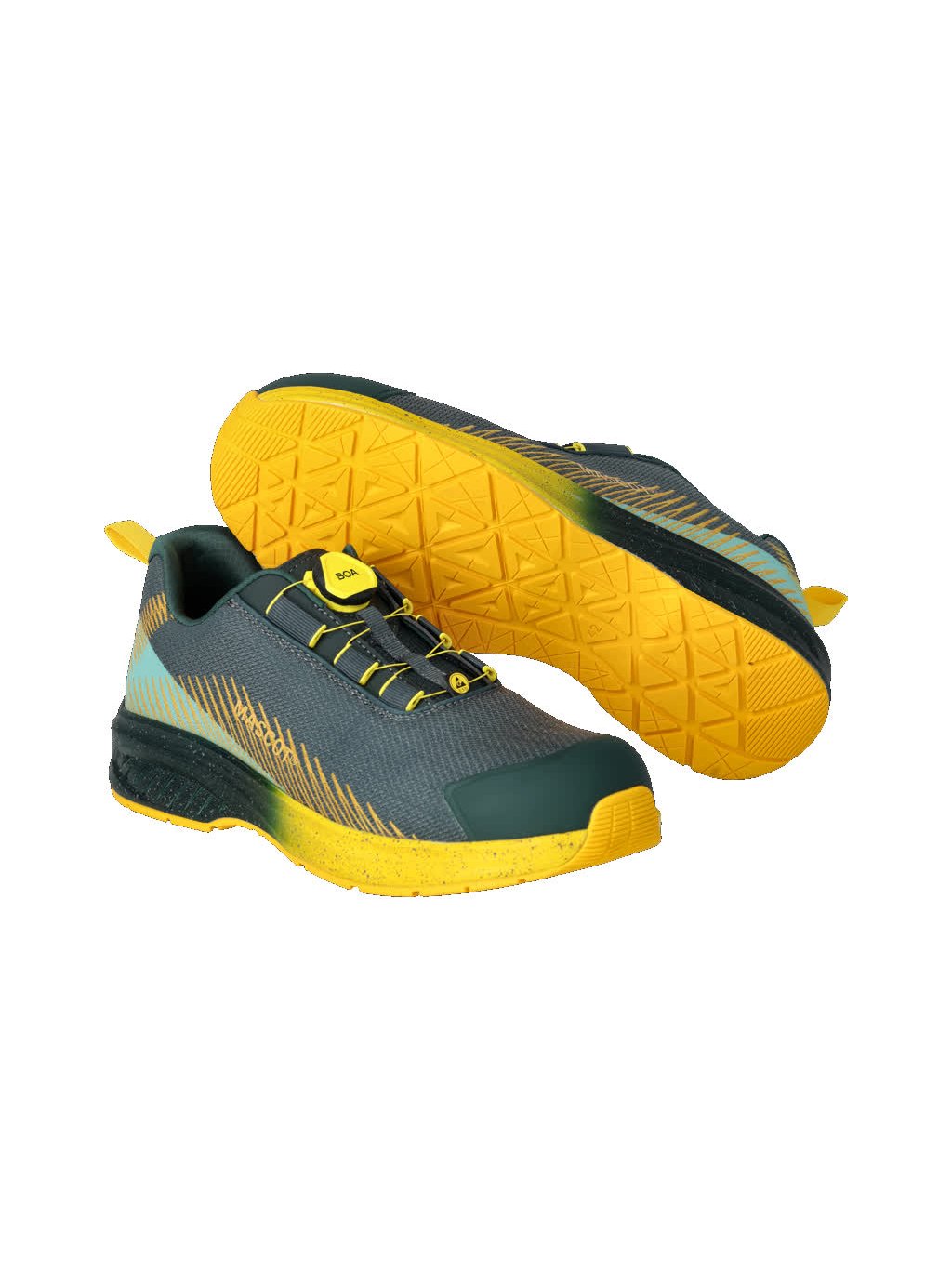 Přední část boty je extrémně flexibilní. Svršek je vyroben z odolného textilu. Zavírání a rozepínání pomocí systému BOA® Fit System, který se skládá z knoflíku, lanka a vodítek tkaniček. Kompozitová špička. Textilní ochrana proti pronikání nehtů MASCOLAYER®. Měkká a pružná stélka tlumící nárazy. Stélky jsou vyměnitelné. Lehká a pružná mezipodešev EVA tlumící nárazy. Ochrana paty z TPU. Ochrana špičky z TPU. PU podrážka. Podrážka je odolná vůči olejům a benzínu. ESD testováno v souladu s normami EN IEC 61340-4-3: 2018, EN 61340-5-1: 2016.