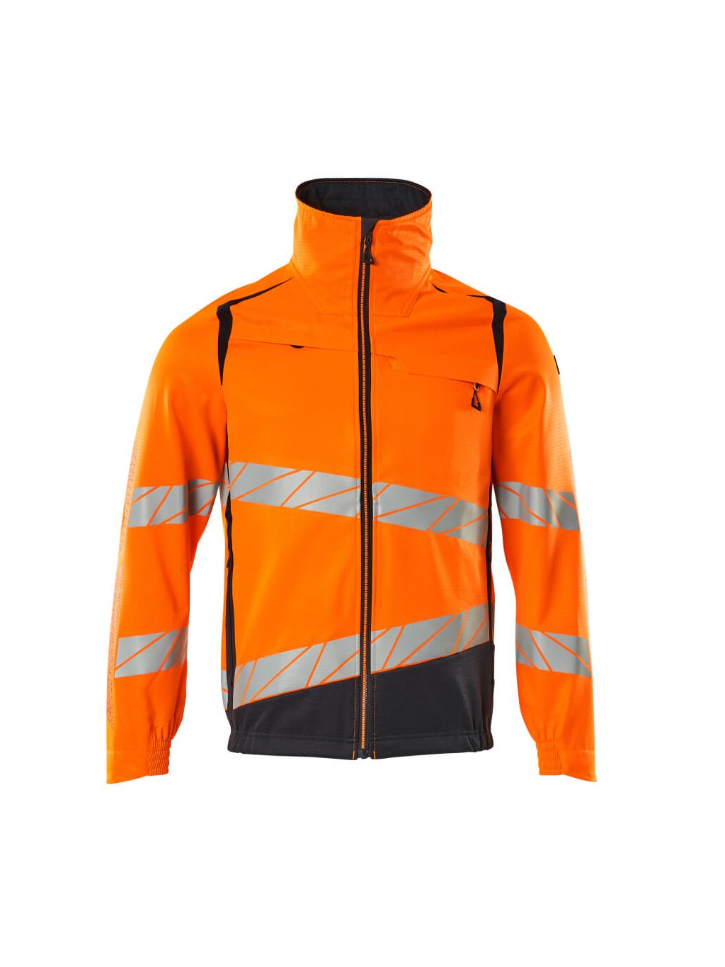 Moderní střih přiléhající k tělu s velkou volností pohybu; výrobek je kombinací pevné tkaniny a elastické tkaniny. Strečová tkanina je umístěna v místech, kde je vyžadována větší volnost pohybu; se zipem a pruhem proti povětrnostním vlivům na vnitřní straně, aby se zabránilo větru; D-kroužek na klíče nebo průkazy; kapsy se zipem; elastické konce rukávů; výrobek je vhodný pro průmyslové praní.