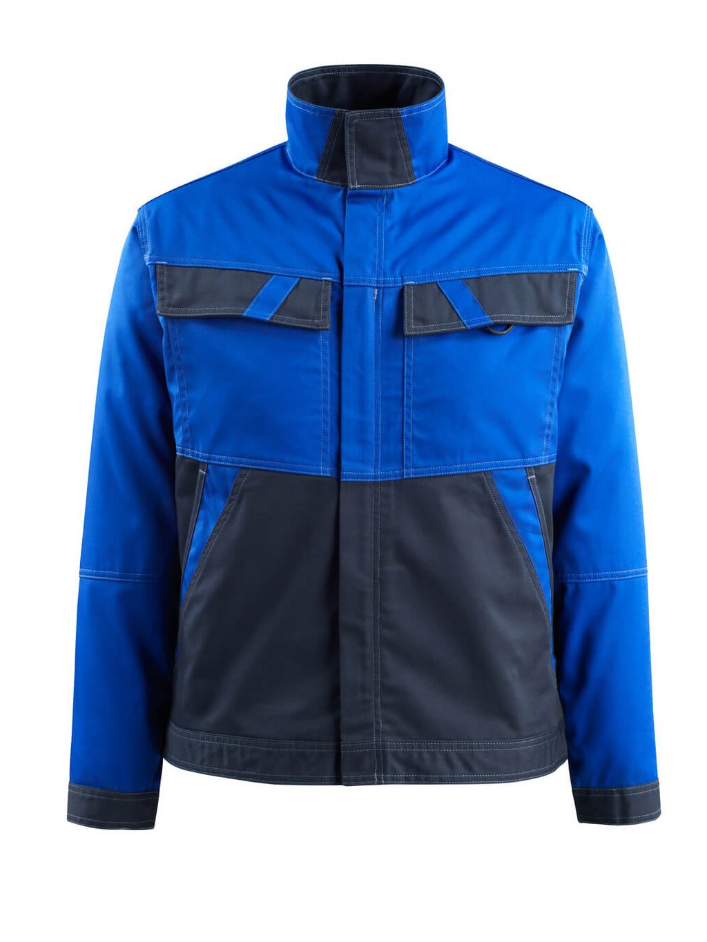 Lehká tkanina v metráži. Dvoubarevná. Stojatý límec. Zapínání na zip a záložka proti povětrnostním vlivům s patentkami. Náprsní kapsy s klopou a druky. D-kroužek. Přední kapsy. Vnitřní kapsa. Opasek se stiskacími cvočky. Manžety se zapínáním na druky. Kontrastní prošívání.