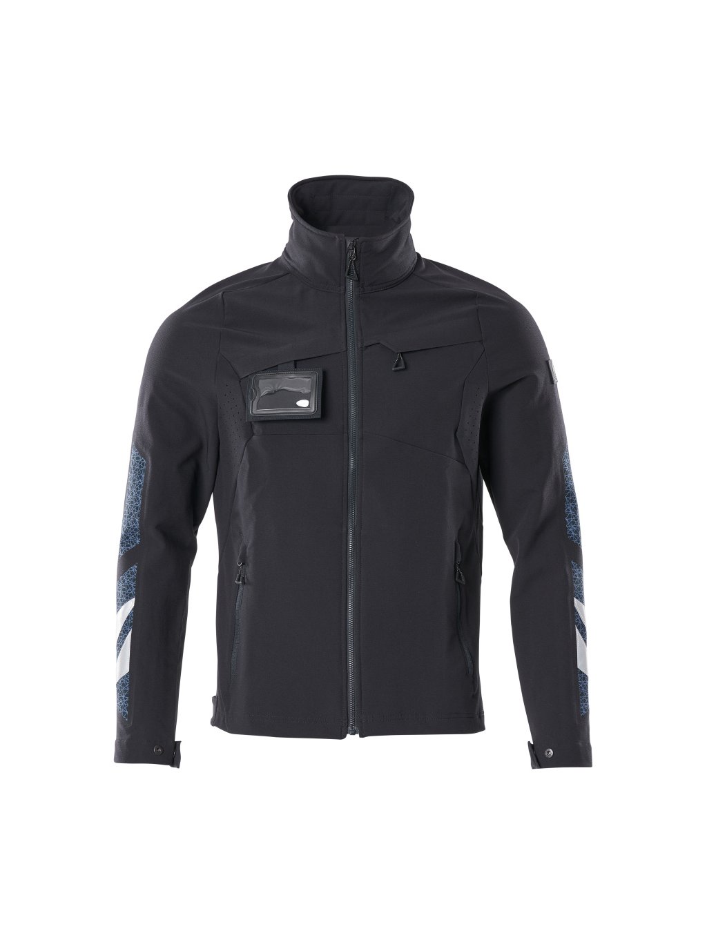 S vodoodpudivou úpravou. Ultimátní strečová tkanina s nízkou hmotností a dobrou odolností. Zapínání na zip a vnitřní ochranný pruh proti povětrnostním vlivům. Náprsní kapsa na zip. Odnímatelné pouzdro na průkaz totožnosti. Přední kapsy na zip. Nastavení na zápěstí a na spodním okraji pomocí stiskacích cvočků. S potiskem a reflexními detaily.