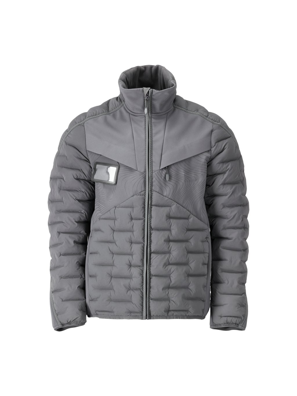 Prošívaná tkanina v metráži s elastickým materiálem. Prodyšná a vodoodpudivá. Moderní střih. Stojatý límec. Zapínání na zip. Vnitřní kapsa ze síťoviny. Náprsní kapsa na zip. Přední kapsy na zip. Odnímatelné pouzdro na průkaz totožnosti. Ergonomicky střižené rukávy umožňují velkou volnost pohybu. Elastické zápěstí a spodní lem. Reflexní efekty. Součástí balení jsou kuličky na sušení prádla v sušičce.