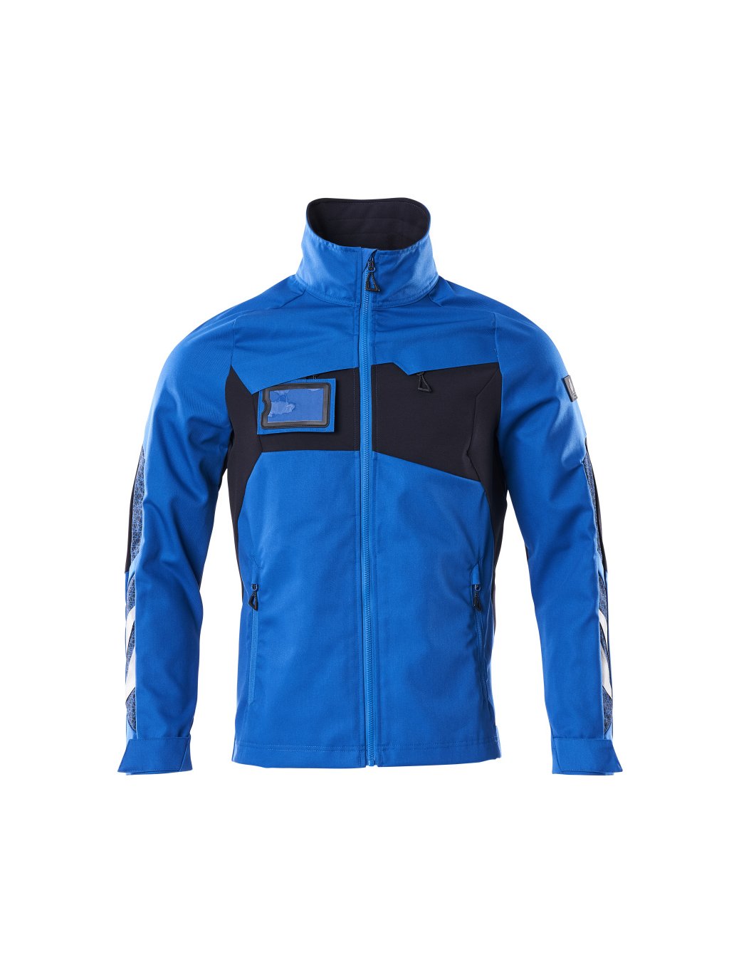 Části výrobku jsou vyrobeny ze strečové tkaniny. Kombinace lehké tkaniny kvality 442 a tkaniny ULTIMATE STRETCH kvality 511, zapínání na zip a vnitřní ochranný pruh proti povětrnostním vlivům. Náprsní kapsa na zip. Odnímatelné pouzdro na průkaz totožnosti. Přední kapsy na zip. Vnitřní kapsy. Nastavení na zápěstí a na spodním okraji na patentky. S potiskem a reflexními detaily.