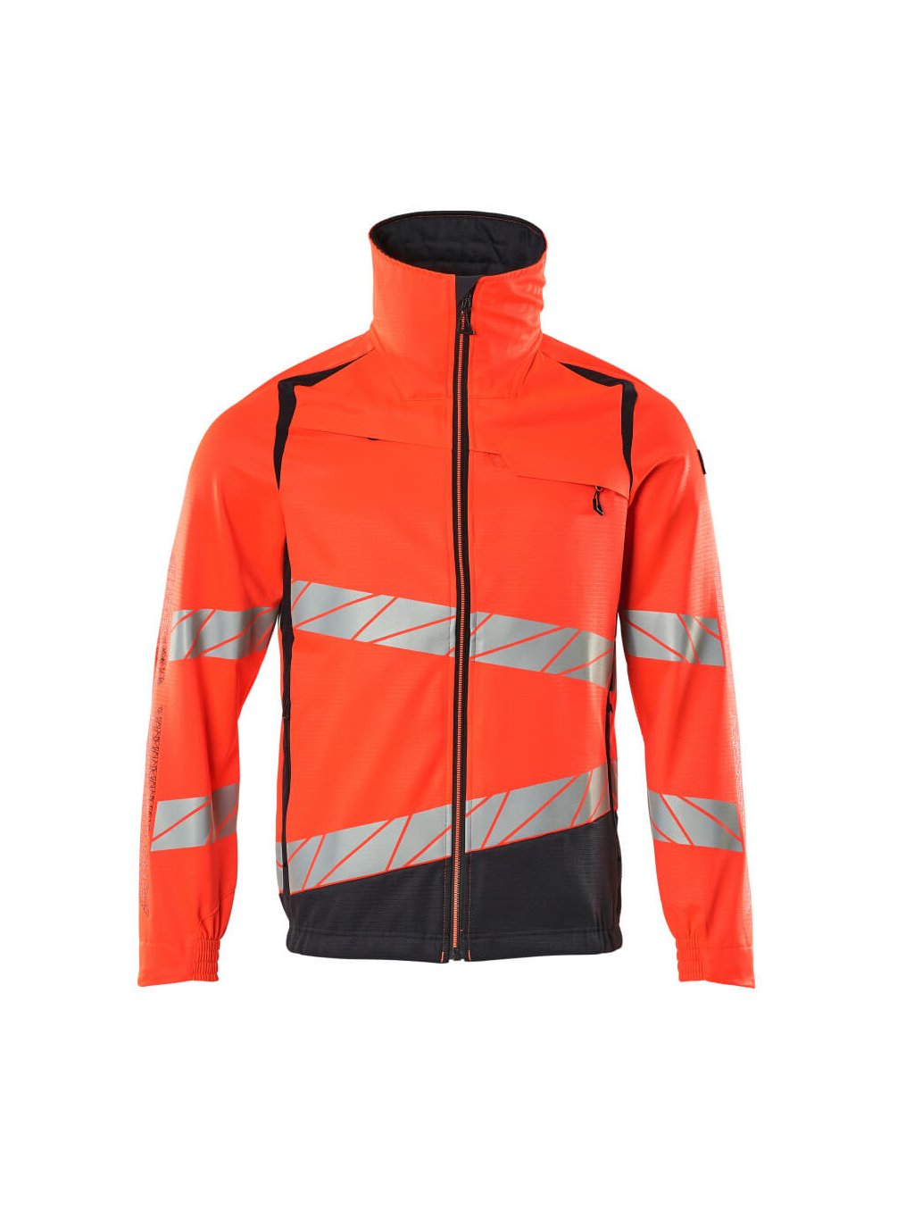Moderní střih přiléhající k tělu s velkou volností pohybu; výrobek je kombinací pevné tkaniny a elastické tkaniny. Strečová tkanina je umístěna v místech, kde je vyžadována větší volnost pohybu; se zipem a pruhem proti povětrnostním vlivům na vnitřní straně, aby se zabránilo větru; D-kroužek na klíče nebo průkazy; kapsy se zipem; elastické konce rukávů; výrobek je vhodný pro průmyslové praní.