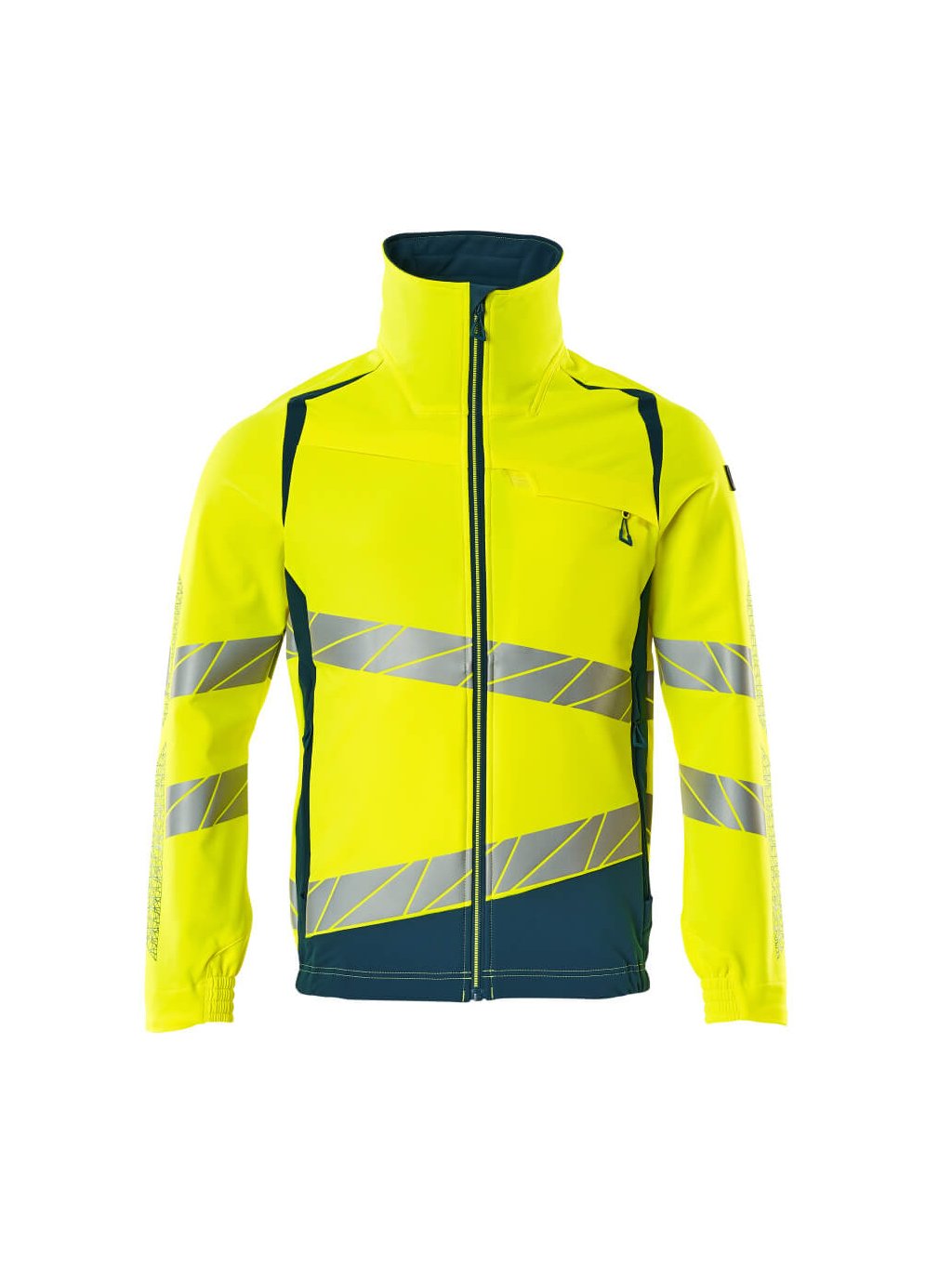 Fluorescenční a s diagonálními odlesky. S vodoodpudivou úpravou. Ultimátní strečová tkanina s nízkou hmotností a dobrou odolností. Stojatý límec. Dvoubarevný. Zapínání na zip a vnitřní ochranný pruh proti povětrnostním vlivům. Připraveno pro připevnění pouzdra na průkaz totožnosti. Náprsní kapsa na zip. Přední kapsy na zip. Vnitřní kapsy. Elastický spodní okraj na bocích. Elastické zápěstí. Odvětrávání pod rukávy. S potiskem.