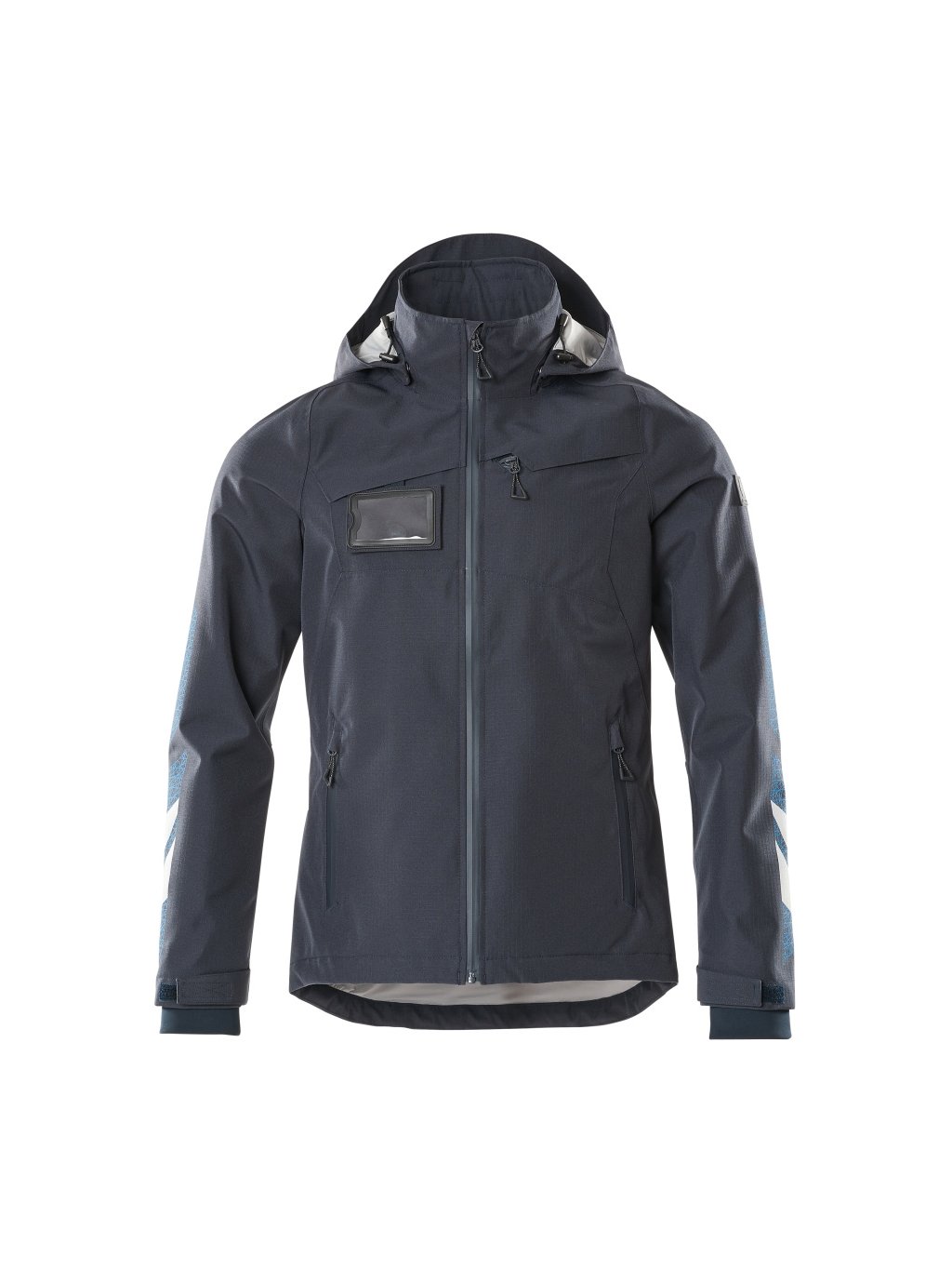 Prodyšná, větruodolná a nepromokavá. Švy jsou podlepené. Kapuce je odnímatelná, podšitá a opatřená nastavitelnými elastickými šňůrkami. Zapínání na zip a dvojitý ochranný pruh proti povětrnostním vlivům. Vnitřní kapsa na zip. Odnímatelné pouzdro na průkaz totožnosti. Náprsní kapsa na zip. Přední kapsy na zip. Nastavitelný elastický spodní lem. Rukávy s výztuhou CORDURA®. Žebrované manžety (skryté pod légou proti povětrnostním vlivům) na zápěstí. S potiskem a reflexními detaily.