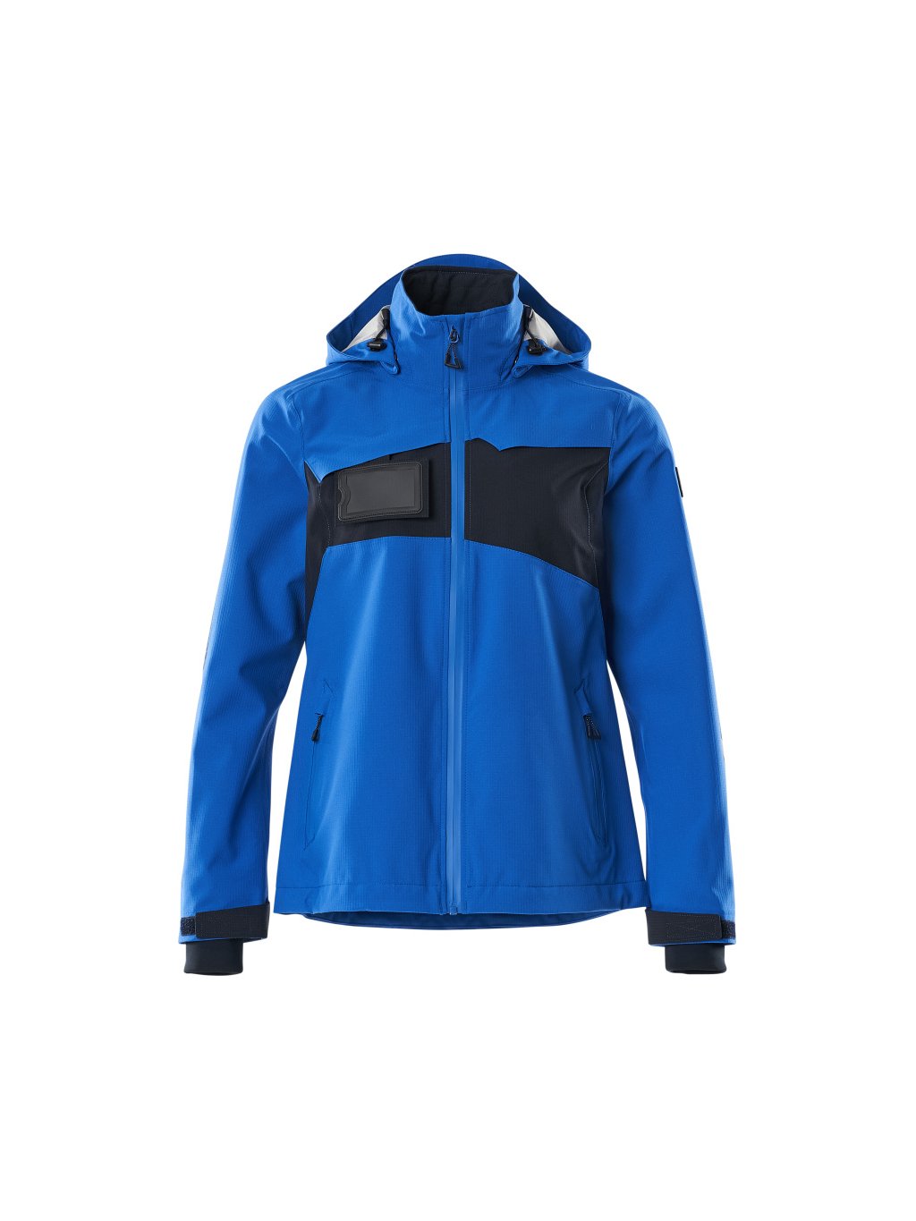 Dámský střih. Lehká tkanina v metráži. Prodyšná, větruodolná a nepromokavá. Podlepené švy. Kapuce je odnímatelná, podšitá a má nastavitelné elastické šňůrky. Zapínání na zip a dvojitý ochranný pruh proti povětrnostním vlivům. Vnitřní kapsa na zip. Odnímatelné pouzdro na průkaz totožnosti. Přední kapsy na zip. Nastavitelný elastický spodní lem. Žebrované manžety (skryté pod légou proti povětrnostním vlivům) na zápěstí. S potiskem a reflexními detaily.