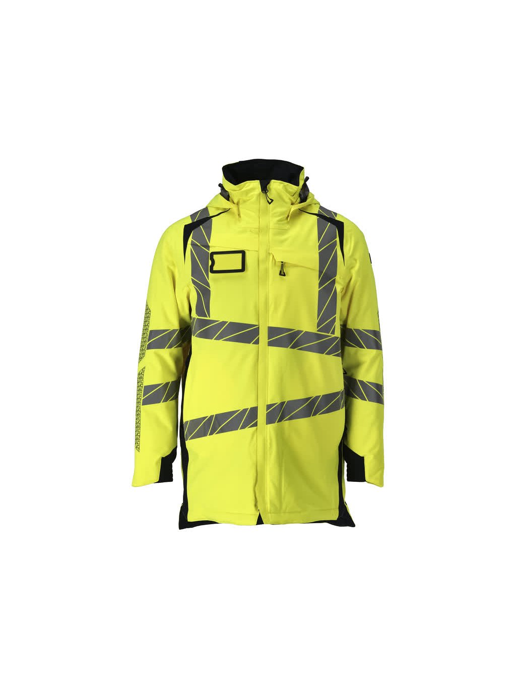 Fluorescenční a s reflexními pruhy na ramenou a diagonálními reflexními prvky. Vynikající prodyšné vlastnosti a odolnost proti větru a vodě. S lehkou izolací CLIMASCOT®. Dvoubarevná. Podlepené švy. Odnímatelná, podšitá kapuce s nastavitelnými elastickými šňůrkami. Zapínání na zip a dvojitý ochranný pruh proti povětrnostním vlivům. Vnitřní kapsy - dvě na zip a jedna otevřená síťovaná kapsa. Odnímatelné pouzdro na průkaz totožnosti. Náprsní kapsa s voděodolným zipem. Přední kapsy s voděodolnými zipy. Stojatý límec. Žebrovaný pas na přední straně, spodní vnitřní lem. Elastické zápěstí. Zip v podšívce na zadní straně pro připevnění loga/výšivky. S potiskem.