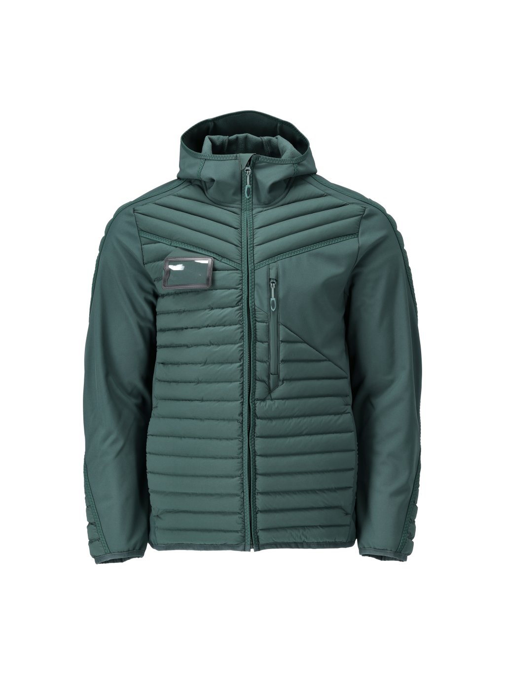 Prošívaná tkanina v metráži s elastickým materiálem. Moderní střih. Prodyšný a vodoodpudivý. Kapuce. Zapínání na zip. Náprsní kapsa na zip. Přední kapsy na zip. Vnitřní síťovaná kapsa. Odnímatelné pouzdro na průkaz totožnosti. Ergonomicky střižené rukávy umožňují velkou volnost pohybu. Elastické zápěstí a spodní lem. Reflexní efekty. Součástí balení jsou kuličky na sušení prádla v sušičce.