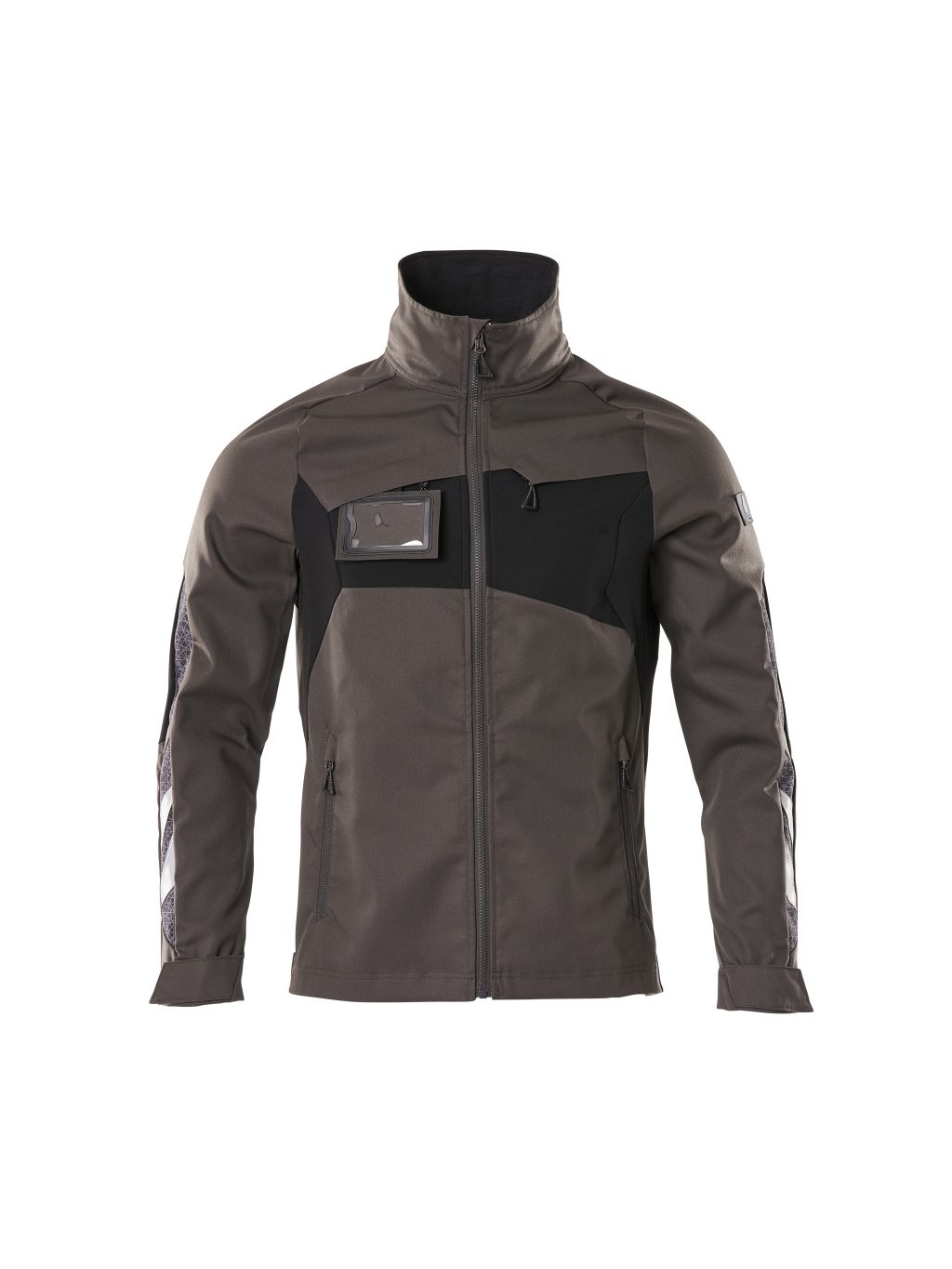 Části výrobku jsou vyrobeny ze strečové tkaniny. Kombinace lehké tkaniny kvality 442 a tkaniny ULTIMATE STRETCH kvality 511, zapínání na zip a vnitřní ochranný pruh proti povětrnostním vlivům. Náprsní kapsa na zip. Odnímatelné pouzdro na průkaz totožnosti. Přední kapsy na zip. Vnitřní kapsy. Nastavení na zápěstí a na spodním okraji na patentky. S potiskem a reflexními detaily.