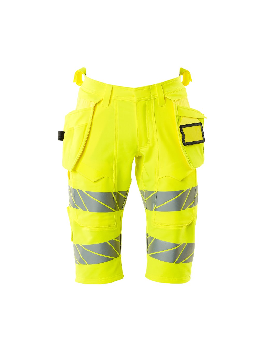 Fluorescenční s odlesky. S vodoodpudivou úpravou. Ultimátní strečová tkanina s nízkou hmotností a dobrou odolností. Dvojité prošití na nohavicích a v rozkroku. Skryté zapínání na knoflíky. Odnímatelné závěsné kapsy. Vnitřní závěsná kapsa se zapínáním na patentku. Závěsná kapsa s podšívkou na mobilní telefon, magnetickým zapínáním a integrovaným pouzdrem na průkaz totožnosti. Pouzdro na průkaz totožnosti je odnímatelné. Závěsné kapsy s výztuhami z materiálu Kevlar® a CORDURA®. Poutka na opasek. Poutka na nářadí na obou stranách opasku. Poklopec se zipem. Přední kapsy. Zadní kapsy, vyztužené a s klopou. Skrytá poutka na kladivo na obou stranách. Knoflík (odnímatelný) pro připevnění pouzdra na nůž. Skládací kapsa na pravidla s kevlarovými® výztuhami. Kapsy s klopou na přední straně stehen. Stehenní kapsa s podšívkou na mobilní telefon a magnetickým zapínáním.