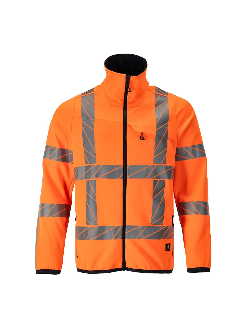 Fluorescenční s vertikální a horizontální reflexní páskou. Moderní přiléhavý střih s velkou volností pohybu. Stojatý límec. Zapínání na zip a vnitřní ochranný pruh proti povětrnostním vlivům. Náprsní kapsa na zip. Přední kapsy na zip. Vnitřní kapsy. Elastické zápěstí a spodní lem.