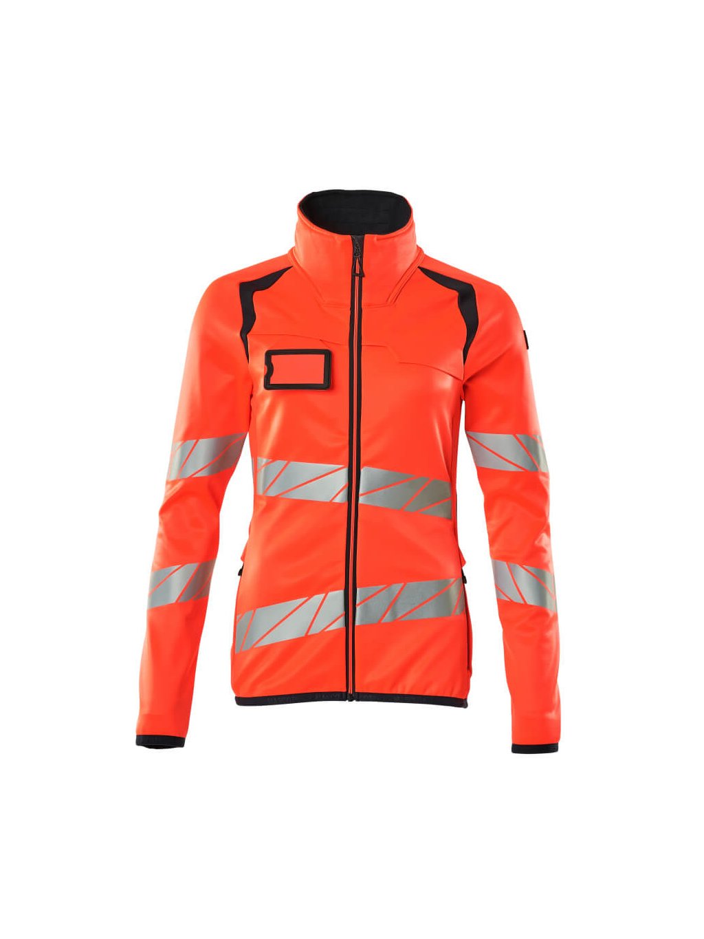 Dámský střih. Fluorescenční a s diagonálními odlesky. Moderní přiléhavý střih s velkou volností pohybu. Stojatý límec. Dvoubarevný. Zapínání na zip a vnitřní ochranný pruh proti povětrnostním vlivům. Přední kapsy na zip. Vnitřní kapsy. Elastické zápěstí a spodní okraj. Odnímatelné pouzdro na průkaz totožnosti.