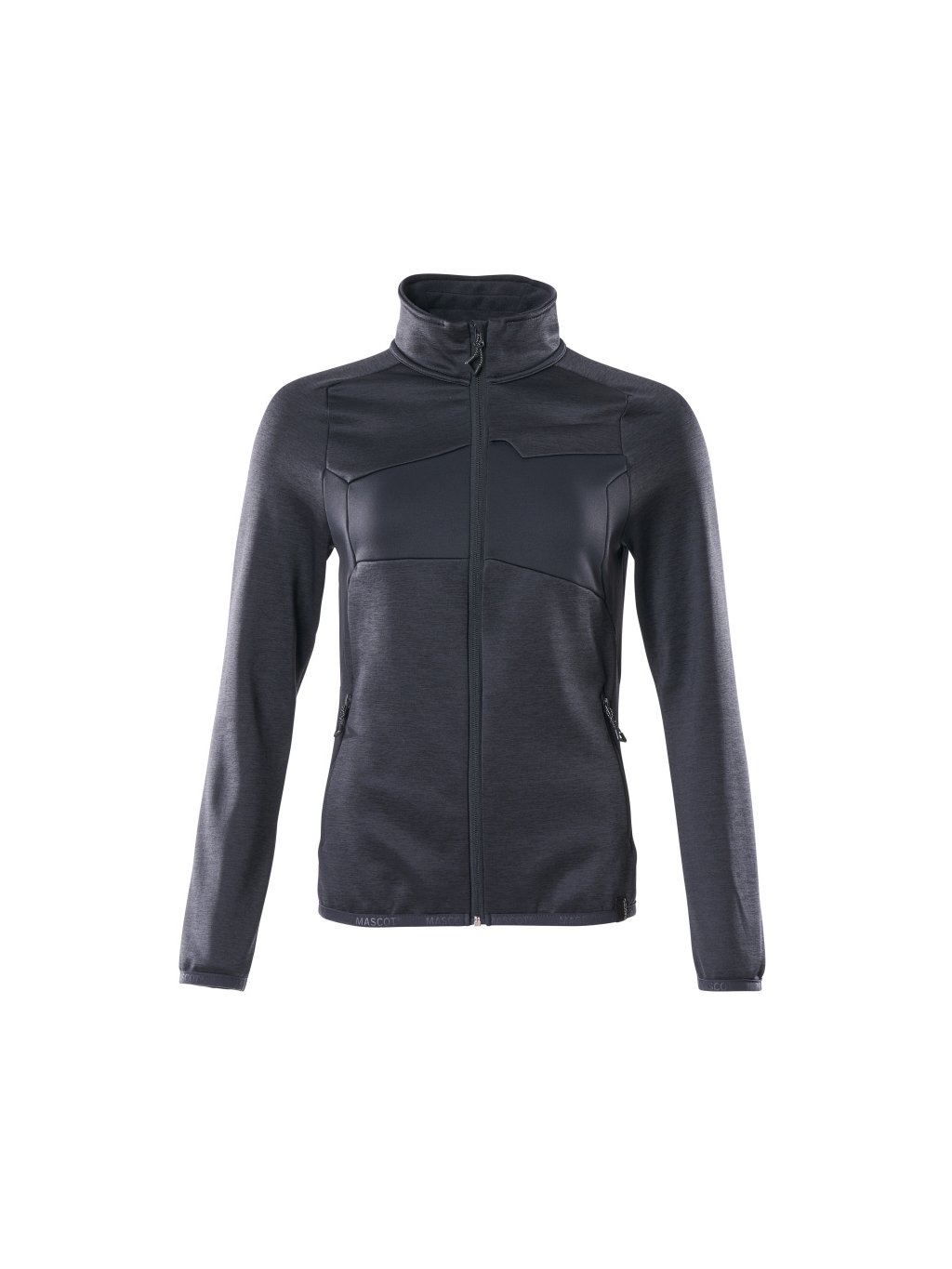 Hladký povrch fleecového materiálu zabraňuje ulpívání nečistot a prachu; Speciálně navržený pro ženy a střih na míru; Pružný a přiléhavý, vysoký límec; Se zipem a ochranným proužkem proti povětrnostním vlivům na vnitřní straně, který zabraňuje větru; S elastickými manžetami a spodním lemem.
