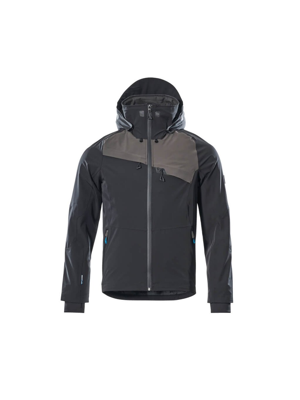 Dvoubarevné. Ultimátní strečová tkanina s nízkou hmotností a vysokou odolností. Prodyšná, větruodolná a nepromokavá. Podlepené švy. Zapínání na voděodolný zip a vnitřní ochranný pruh proti povětrnostním vlivům. Kapuce je odnímatelná, podšitá a opatřená nastavitelnými elastickými šňůrkami. Stojatý límec s nastavitelnými elastickými šňůrkami. Vnitřní kapsa na zip. Náprsní kapsy na zip. Ergonomicky střižené rukávy umožňují velkou volnost pohybu. Přední kapsy na zip. Prodloužená záda. Nastavitelný elastický spodní lem. Žebrované manžety (skryté pod pruhem chránícím před povětrnostními vlivy) na zápěstí. Otvory na palce na zápěstí. Reflexní efekty.