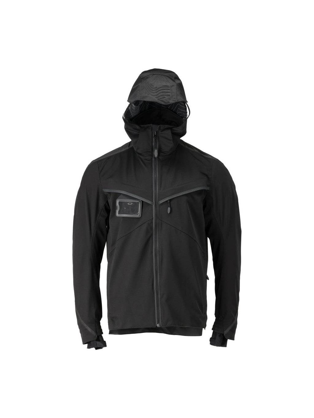Maximálně elastická tkanina s nízkou hmotností. Prodyšná, větruodolná a vodoodpudivá. Podlepené švy. Zapínání na zip a vnitřní ochranný pruh proti povětrnostním vlivům. Kapuce je podšitá a odnímatelná. Kapuce má po stranách průhledné plastové vložky. Stojatý límec. Náprsní kapsa na zip. Přední kapsy na zip. Odnímatelné pouzdro na průkaz totožnosti. Ergonomicky střižené rukávy umožňují velkou volnost pohybu. Vnitřní kapsy. Elastické manžety. Žebrované manžety (skryté pod légou proti povětrnostním vlivům) na zápěstí. Otvory na palce na zápěstí. Prodloužená zadní část. Zip v podšívce na zadní straně pro připevnění loga/výšivky. Reflexní efekty.