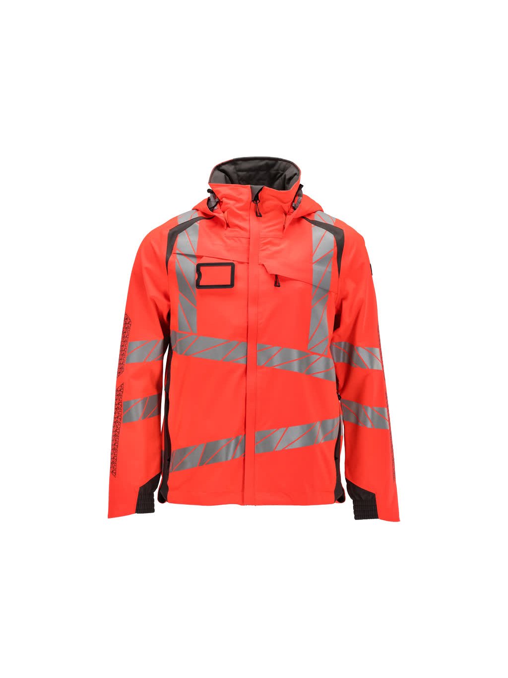 Fluorescenční a s reflexními pruhy na ramenou a diagonálními reflexními prvky. Dvoubarevné. Vynikající prodyšné vlastnosti a odolnost proti větru a vodě. Podlepené švy. Kapuce je odnímatelná, podšitá a opatřená nastavitelnými elastickými šňůrkami. Zapínání na zip a dvojitý ochranný pruh proti povětrnostním vlivům. Vnitřní kapsy - dvě na zip a jedna otevřená síťovaná. Odnímatelné pouzdro na průkaz totožnosti. Náprsní kapsa s voděodolným zipem. Přední kapsy s voděodolnými zipy. Stojatý límec. Žebrovaný pas na přední straně, spodní vnitřní lem. Prodloužený zadní díl se zapínáním na knoflíky pro lepší ochranu proti větru a povětrnostním vlivům. Elastické zápěstí. S potiskem.