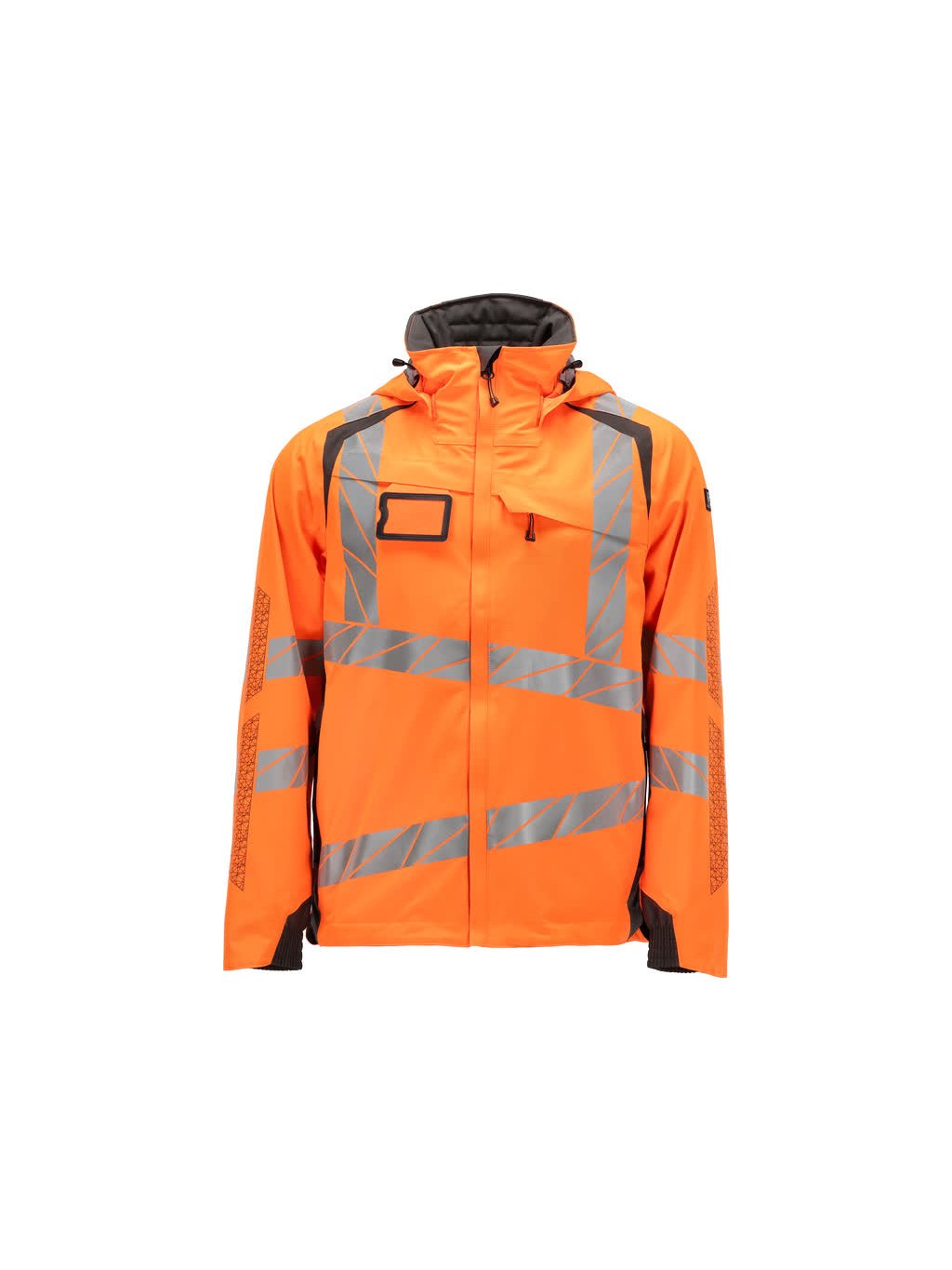 Fluorescenční a s reflexními pruhy na ramenou a diagonálními reflexními prvky. Dvoubarevné. Vynikající prodyšné vlastnosti a odolnost proti větru a vodě. Podlepené švy. Kapuce je odnímatelná, podšitá a opatřená nastavitelnými elastickými šňůrkami. Zapínání na zip a dvojitý ochranný pruh proti povětrnostním vlivům. Vnitřní kapsy - dvě na zip a jedna otevřená síťovaná. Odnímatelné pouzdro na průkaz totožnosti. Náprsní kapsa s voděodolným zipem. Přední kapsy s voděodolnými zipy. Stojatý límec. Žebrovaný pas na přední straně, spodní vnitřní lem. Prodloužený zadní díl se zapínáním na knoflíky pro lepší ochranu proti větru a povětrnostním vlivům. Elastické zápěstí. S potiskem.