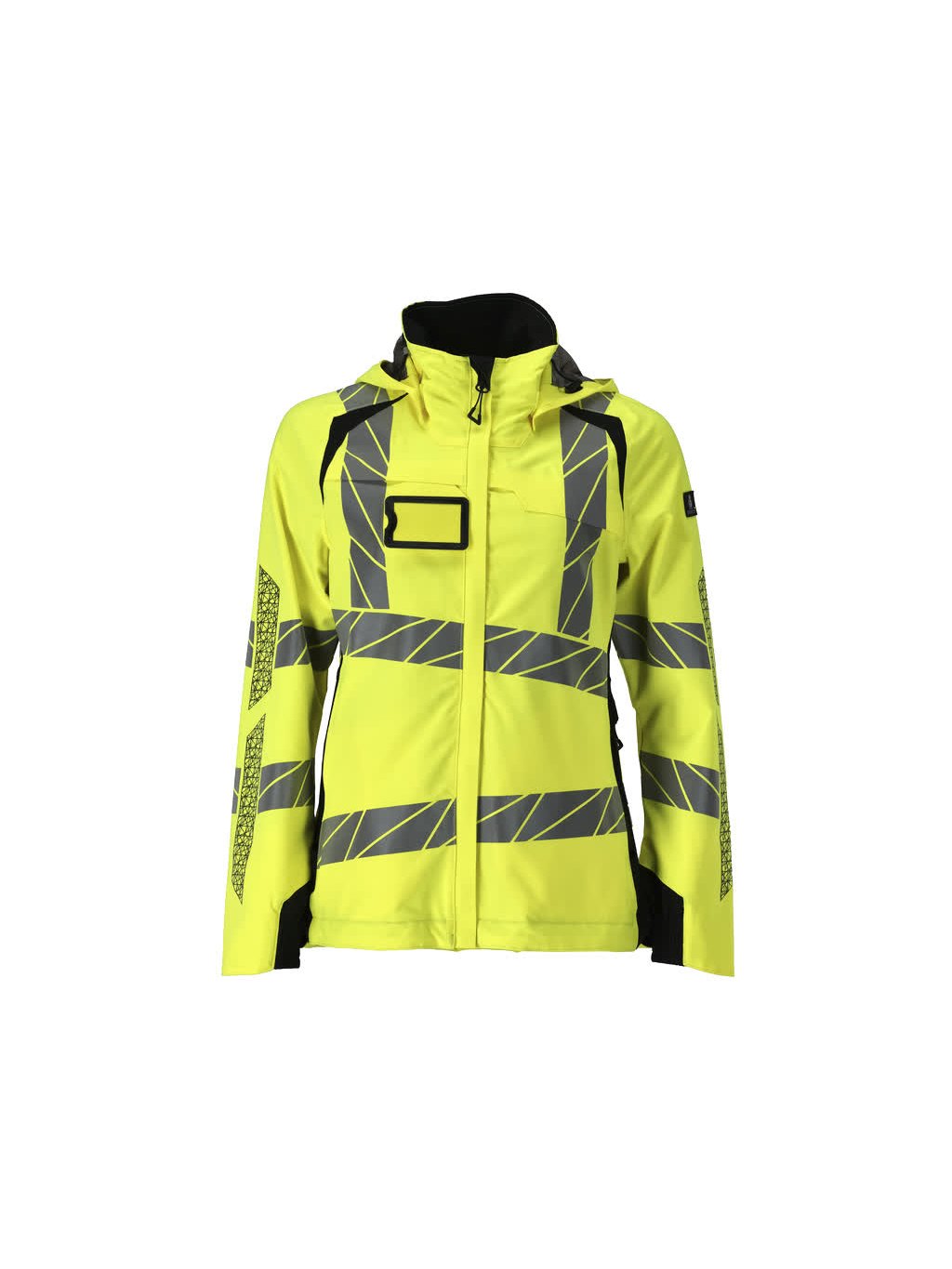 Dámský střih. Fluorescenční a s reflexními pruhy na ramenou a diagonálními reflexními prvky. Dvoubarevné. Vynikající prodyšné vlastnosti a také větru a voděodolnost. Podlepené švy. Kapuce je odnímatelná, podšitá a opatřená nastavitelnými elastickými šňůrkami. Zapínání na zip a dvojitý ochranný pruh proti povětrnostním vlivům. Vnitřní kapsy - dvě na zip a jedna otevřená síťovaná. Odnímatelné pouzdro na průkaz totožnosti. Přední kapsy s voděodolnými zipy. Stojatý límec. Žebrovaný pas vpředu, spodní vnitřní lem. Prodloužený zadní díl se zapínáním na knoflíky pro lepší ochranu proti větru a povětrnostním vlivům. Elastické zápěstí. S potiskem.