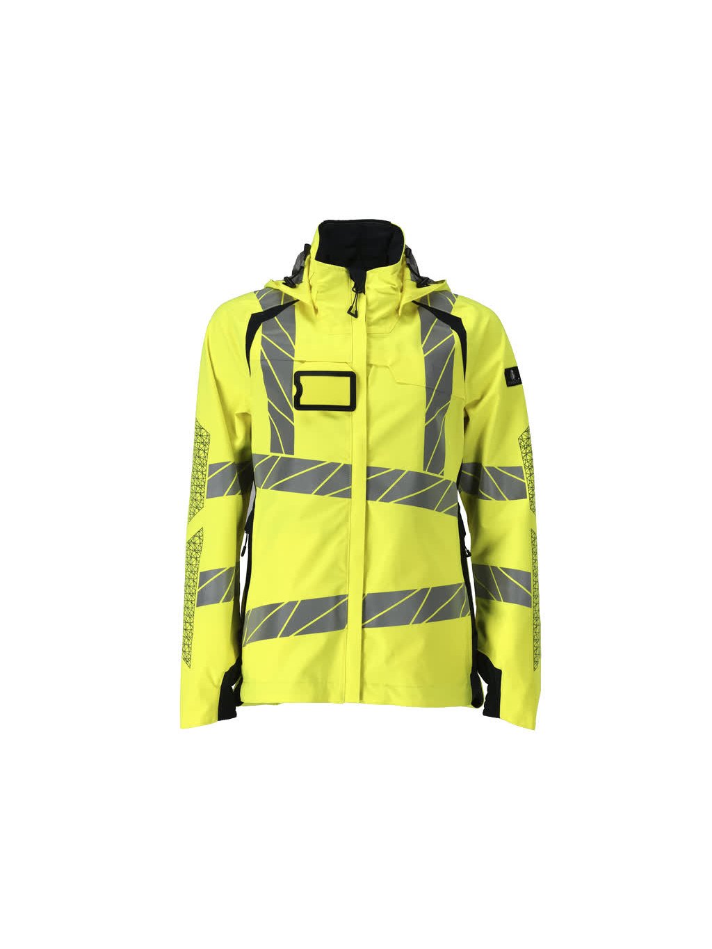 Dámský střih. Fluorescenční a s reflexními pruhy na ramenou a diagonálními reflexními prvky. Dvoubarevné. Vynikající prodyšné vlastnosti a také větru a voděodolnost. Podlepené švy. Kapuce je odnímatelná, podšitá a opatřená nastavitelnými elastickými šňůrkami. Zapínání na zip a dvojitý ochranný pruh proti povětrnostním vlivům. Vnitřní kapsy - dvě na zip a jedna otevřená síťovaná. Odnímatelné pouzdro na průkaz totožnosti. Přední kapsy s voděodolnými zipy. Stojatý límec. Žebrovaný pas vpředu, spodní vnitřní lem. Prodloužený zadní díl se zapínáním na knoflíky pro lepší ochranu proti větru a povětrnostním vlivům. Elastické zápěstí. S potiskem.