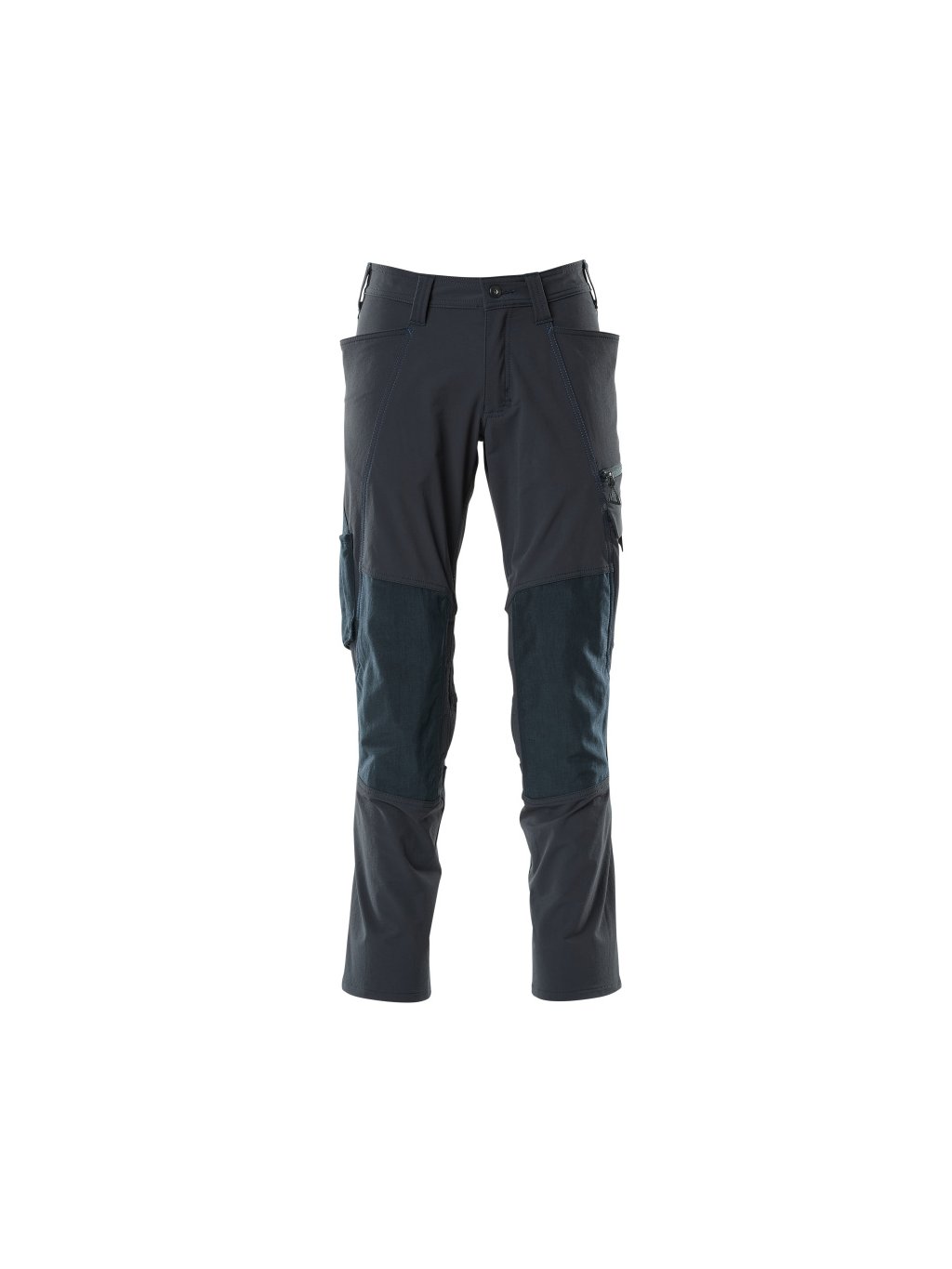 Strečová tkanina je pružná ve všech směrech a nabízí bezkonkurenční volnost pohybu, kdy nic netáhne a nepřekáží; multifunkční strečová tkanina kombinuje nízkou hmotnost s velmi vysokou odolností a je také vodoodpudivá; nízký pas s tvarovaným pasem zajišťuje, že kalhoty kopírují všechny pohyby těla; kolenní kapsy z odolné tkaniny CORDURA® jsou nastavitelné, takže ochrana kolen je vždy optimálně umístěna.Ochranu kolen lze snadno vložit bočním otvorem na zip během nošení kalhot; Účinné odvětrávání oblasti kolen díky otvoru na zip na vnitřní straně nohavice; Standardně k dispozici ve třech různých délkách rozkroku pro co nejlepší individuální přizpůsobení a nejlépe umístěné detaily; Certifikováno pro použití společně s chrániči kolen MASCOT typu SHORT nebo LONG, protože kapsa na chrániče kolen je výškově nastavitelná.