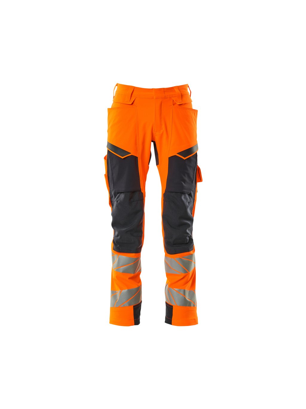 Fluorescenční s odlesky. Polyester je vyroben z recyklovaných materiálů. S vodoodpudivou úpravou. Dvoubarevné. Lehké. Ultimátní strečová tkanina, která je mimořádně lehká a odolná. Dvojité prošití na nohavicích a v rozkroku. Skryté zapínání na knoflíky. Ergonomicky tvarované nohavice. Poutka na pásek. Zapínání na zip. Přední kapsy. Zesílené zadní kapsy. Skryté poutko na kladivo na pravé straně. Sklopná kapsa na pravidla s kevlarovými® výztuhami. Přední stehenní kapsy s klopou. Kolenní kapsy ze superodolné CORDURY® (1000 D), výškově nastavitelné. Stehenní kapsa s podšívkou na mobilní telefon, skrytým zapínáním na druk a integrovaným pouzdrem na průkaz totožnosti. Pouzdro na průkaz totožnosti je odnímatelné. Svislý zip pro větrání na zadní straně stehna. S potiskem efektů. Příprava pro závěsné kapsy 19450-126, které se zapínají na knoflíky. Rozpáráním červeného švu na vnitřní straně konce nohavice lze prodloužit rozkrok o 3 cm. K tomuto modelu doporučujeme následující ochranu kolen: 00418-100, 00718-100, 50451-916 nebo 20118-915. Certifikováno společně s chráničem kolen typu SHORT nebo LONG podle normy EN 14404.