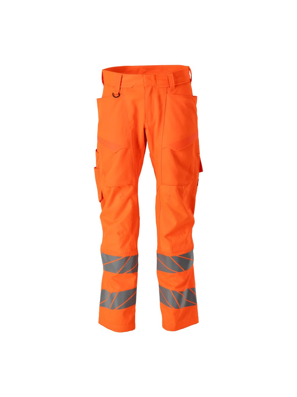 Fluorescenční s odlesky. Části výrobku jsou vyrobeny z elastické tkaniny. Kombinace lehké tkaniny kvality 236 a tkaniny ULTIMATE STRETCH kvality 511. Připraveno pro zavěšení kapes pomocí systému Click Pocket. Dvojité prošití na nohavicích a v rozkroku. Skryté zapínání na knoflíky. Ergonomicky tvarované nohavice. Poutka na pásek. D-kroužek. Zapínání na zip. Přední kapsy. Zesílené zadní kapsy. Skryté poutko na kladivo na pravé straně. Vyztužená kapsa na skládací pravidla. Přední stehenní kapsy s klopou. Výškově nastavitelné kolenní kapsy. Jednoduché a individuální nastavení výšky kolenních kapes. Stehenní kapsa s kapsou na mobilní telefon, klopou a skrytými druky. Délku rozkroku lze prodloužit o 3 cm rozepnutím červeného švu na vnitřní straně konce nohavice. K tomuto modelu doporučujeme následující ochranu kolen: 00418-100, 00718-100, 50451-916 nebo 20118-915. Certifikováno společně s chráničem kolen typu SHORT nebo LONG podle normy EN 14404.