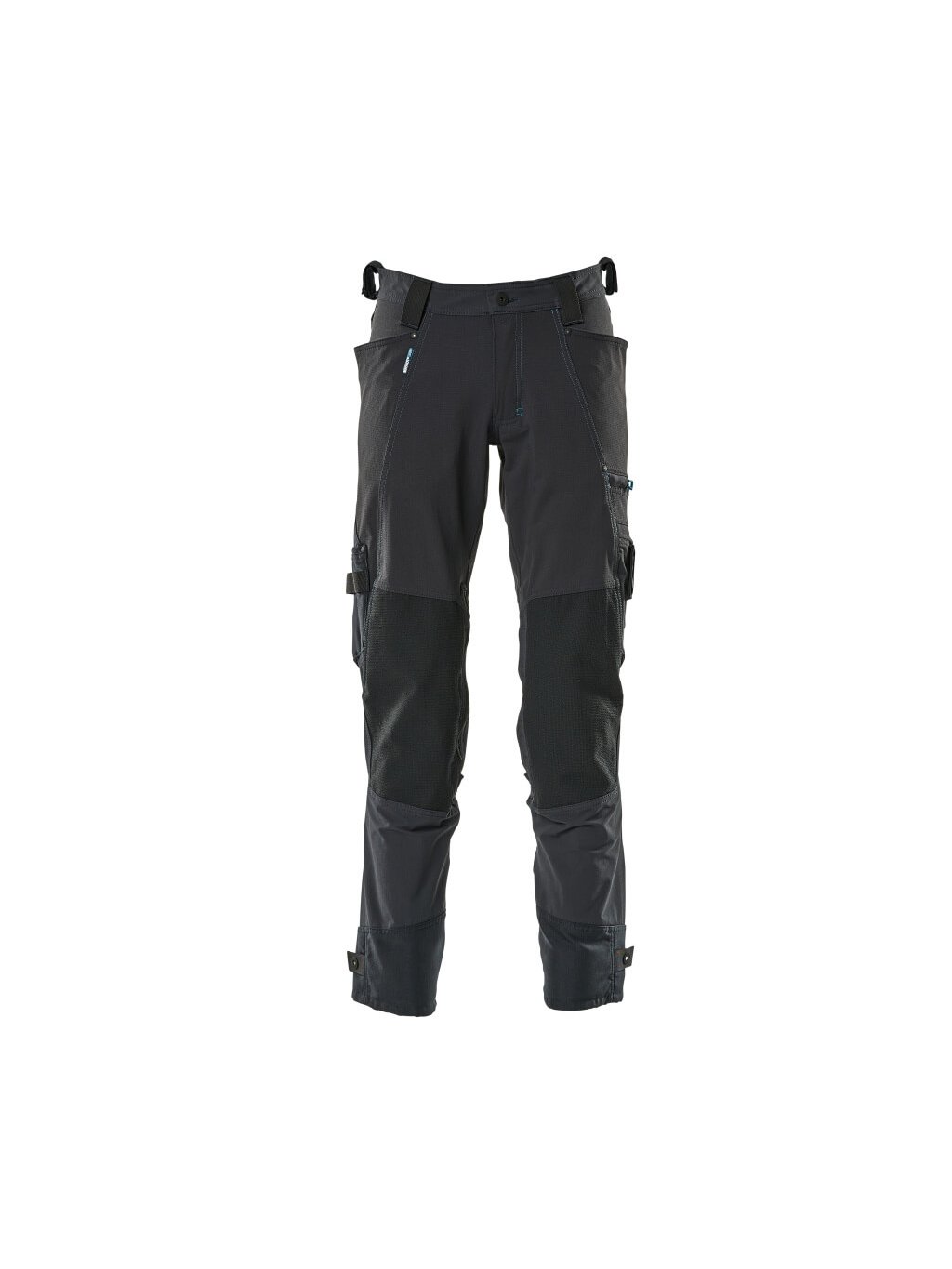 S vodoodpudivou úpravou. Ultimátní strečová tkanina s nízkou hmotností a vysokou odolností. Tkanina je téměř neznatelná na kůži, protože kapsy jsou integrovány do designu. Dvojité prošití na nohavicích a v rozkroku. Nízký pas. Nohavice kalhot jsou ergonomicky tvarované. Poutka na opasek. Zapínání na zip. Přední kapsy. Zadní kapsy. Poutka na nářadí na obou stranách pasu. Stehenní kapsa s přihrádkou na mobilní telefon, magnetickým zapínáním a integrovaným pouzdrem na průkaz totožnosti. Pouzdro na průkaz totožnosti je odnímatelné. Skládací kapsa na pravidla z tkaniny CORDURA® s dalšími kapsami. Odolné kolenní kapsy z tkaniny CORDURA®/Kevlar®/Dyneema® odolné proti propíchnutí jsou elastické a odvětrané. Nastavení pomocí stiskacích cvočků u kotníků. Reflexní efekty. K tomuto modelu doporučujeme následující ochranu kolen: 00718-100, 50451-916 nebo 20118-915. Certifikováno společně s chráničem kolen typu LONG podle normy EN 14404.
