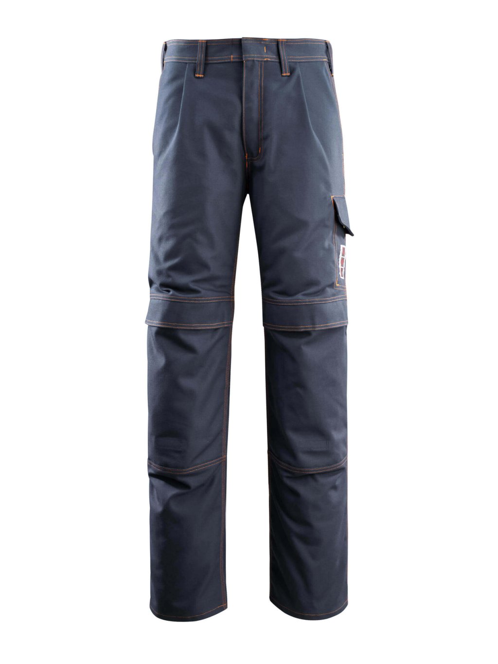 Antistatický a nehořlavý materiál PyroPro® s ochranou proti kyselinám. Chrání před elektrickým obloukem a příležitostným svařováním. Díky povrchové úpravě výrobek odpuzuje nečistoty. Trojité prošití na nohavicích a v rozkroku. Poutka na opasek. Poklopec se zipem. Přední kapsy. Zadní kapsy s klopou a skrytými druky. Stehenní kapsa s klopou a skrytými druky. Sklopná kapsa s pravidly. Výškově nastavitelné kolenní kapsy s klopou a přístupem shora. Švy směřující dolů, aby se do nich nezachytily jiskry. Kontrastní prošívání. K tomuto modelu doporučujeme následující ochranu kolen: 00418-100, 00718-100, 50451-916 nebo 20118-915. Certifikováno společně s chráničem kolen typu SHORT nebo LONG podle normy EN 14404.