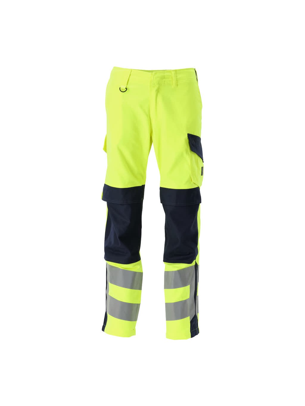 Dvoubarevné. Fluorescenční s odlesky. Antistatické, nehořlavé a s ochranou proti kyselinám. Odpuzuje nečistoty. Chrání před elektrickým obloukem a příležitostným svařováním. Dvojité a trojité prošití na nohavicích a v rozkroku. Poutka na opasek. Nízký pas a tvarovaný pas. D-kroužek. Poklopec se zipem. Ergonomicky tvarované nohavice. Přední kapsy. Zesílené zadní kapsy s klopou a skrytými druky. Stehenní kapsa s klopou a skrytými druky. Stehenní kapsa na mobilní telefon. Skládací kapsa s klopou, vyztužená. Kapsy na kolenou, výškově nastavitelné, s klopou a přístupem shora. Pro tento model doporučujeme následující ochranu kolen: 00718-100, 50451-916 nebo 20118-915. Certifikováno společně s chráničem kolen typu LONG podle normy EN 14404.