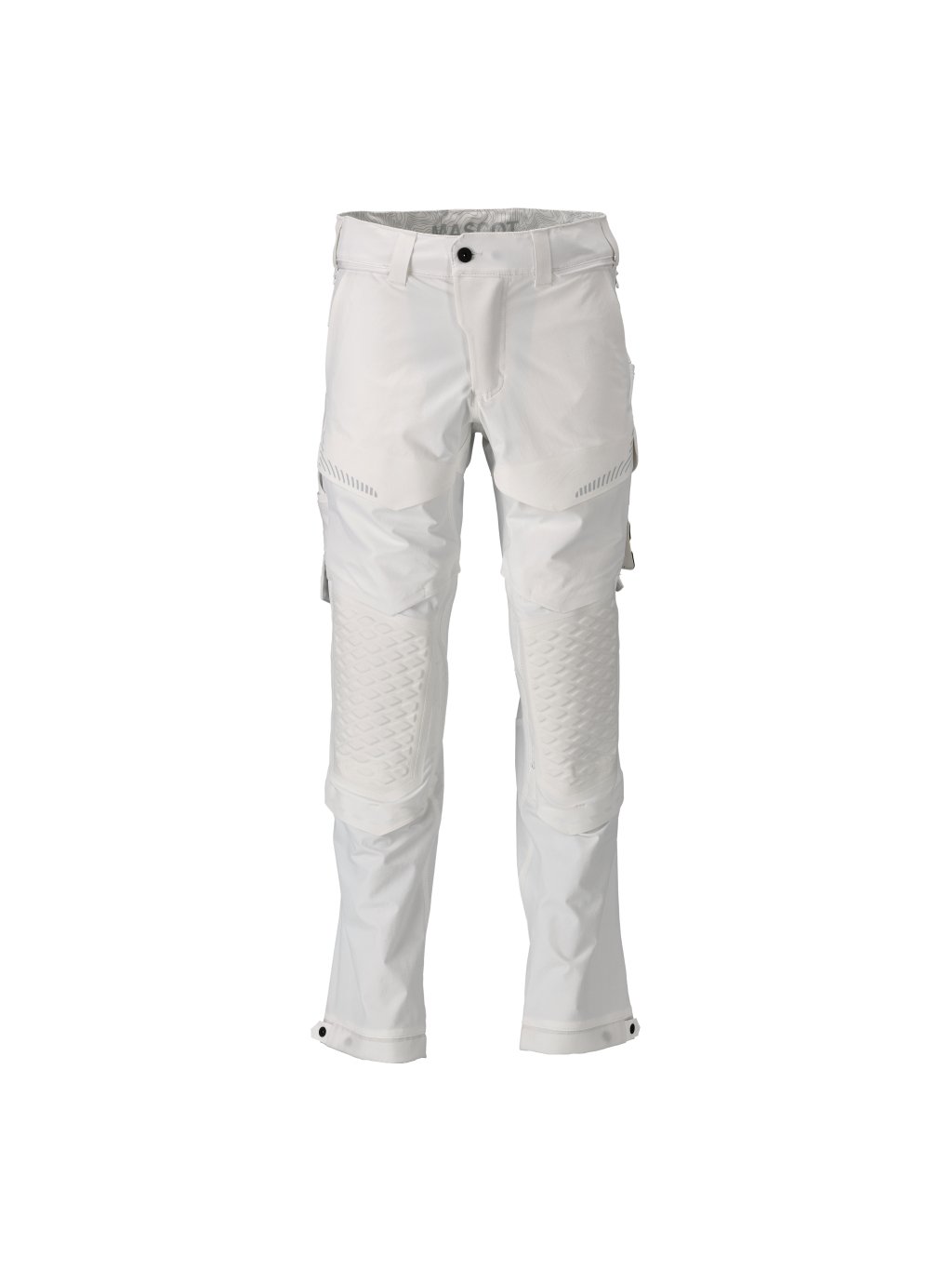 Ultimátní strečová tkanina s nízkou hmotností a vysokou odolností. S vodoodpudivou úpravou. Připraveno pro zavěšení kapes pomocí systému Click Pocket System. Dvojité a trojité prošití na nohavicích a v rozkroku. Nohavice kalhot jsou ergonomicky tvarované. Větrací otvory v zadní části kolen a v zadní části pasu. Poutka na opasek. Skryté poutko na kladivo na levé straně. Zapínání na zip. Větrací síťovina se zipem na bocích. Přední kapsy. Dvě zadní kapsy, jedna s klopou. Kapsa na pravítko vyztužená tkaninou CORDURA® a malá vnější kapsa. Knoflík (odnímatelný) pro připevnění pouzdra na nůž. Stehenní kapsa s přihrádkou na mobilní telefon, magnetickým zapínáním a integrovaným držákem na průkaz totožnosti. Pouzdro na průkaz totožnosti je odnímatelné. Kapsy s klopou na přední straně stehna. Nastavitelné a odvětrávané kolenní kapsy z vysoce odolného materiálu CORDURA®. Jednoduché a individuální nastavení výšky kolenních kapes. Nastavení pomocí stiskacích cvočků u kotníků. Reflexní efekty. K tomuto modelu doporučujeme následující ochranu kolen: 00418-100, 00718-100 nebo 20118-915. Certifikováno společně s chrániči kolen typu SHORT nebo LONG podle normy EN 14404.