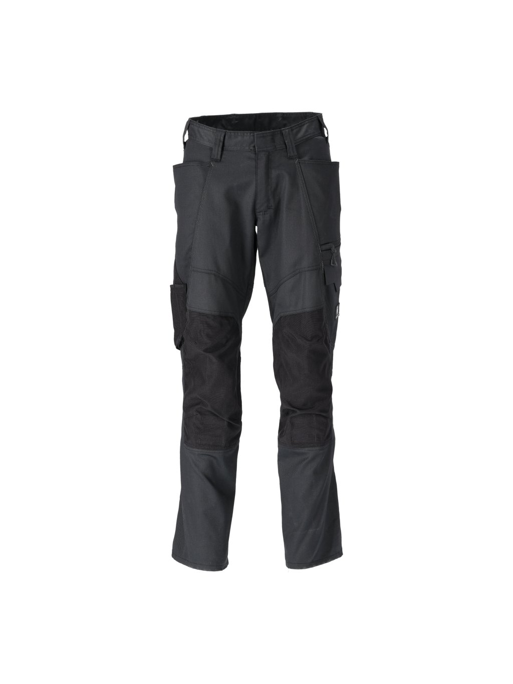 Obousměrný strečový materiál. Kapsy jsou integrovány do designu. Dvojité prošití na nohavicích a v rozkroku. Poutka na pásek. Skryté zapínání na knoflíky. Zapínání na zip. Ergonomicky tvarované nohavice. Přední kapsy. Zesílené zadní kapsy. Stehenní kapsa s kapsou na mobilní telefon, klopou a skrytým drukem a integrovaným pouzdrem na průkaz totožnosti. Pouzdro na průkaz totožnosti je odnímatelné. Sklopná kapsa na pravidla z tkaniny CORDURA® s dalšími kapsami. Kapsy na kolenou z mimořádně odolné tkaniny CORDURA® (1000 D). Snadné a individuální nastavení výšky kolenních kapes. S potiskem a reflexními detaily. K tomuto modelu doporučujeme následující ochranu kolen: 00418-100, 00718-100 nebo 20118-915. Certifikováno společně s chráničem kolen typu SHORT nebo LONG podle normy EN 14404.