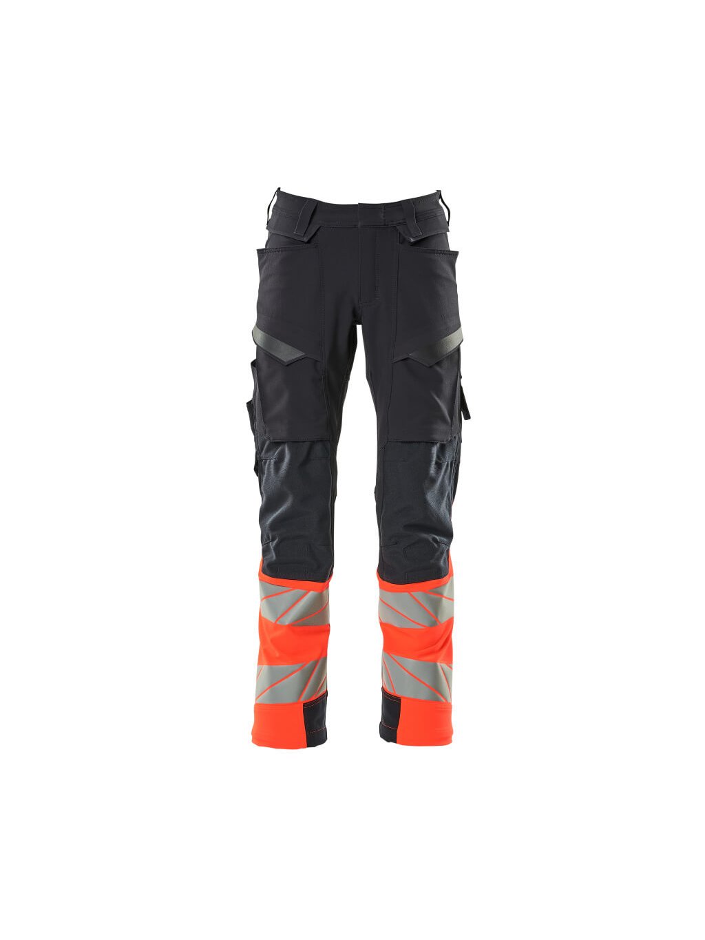 Kalhoty s kolenními kapsami Černá modrá/hi-vis červená