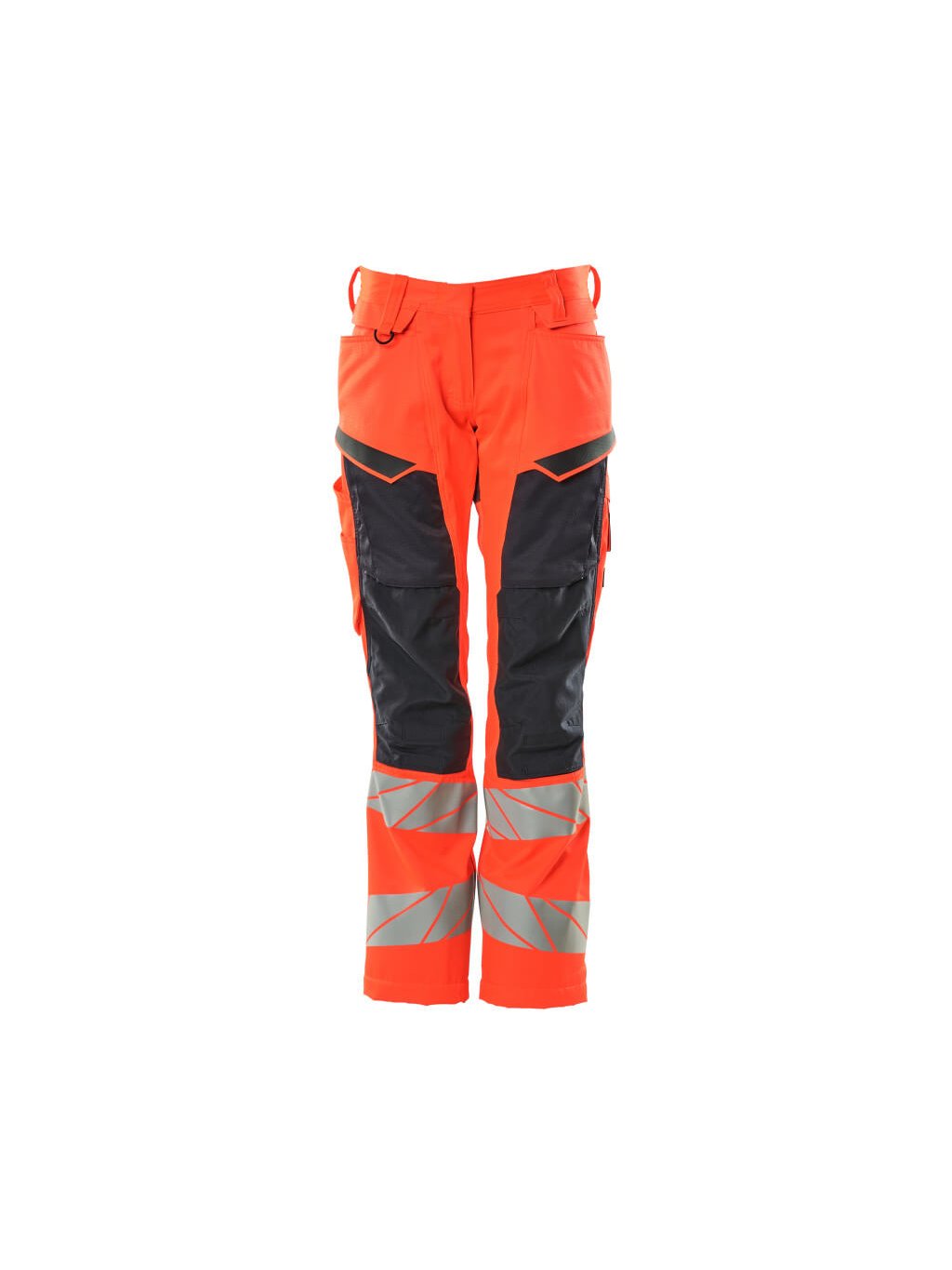 Dámský fit DIAMOND. Fluorescenční s odlesky. Dvoubarevné. Části výrobku jsou vyrobeny ze strečové tkaniny. Kombinace lehké tkaniny kvality 236 a tkaniny ULTIMATE STRETCH kvality 511. Dvojité prošití na nohavicích a v rozkroku. Skryté zapínání na knoflíky. Zapínání na zip. Ergonomicky tvarované nohavice. Poutka na pásek. D-kroužek. Přední kapsy. Zesílené zadní kapsy. Skryté poutko na kladivo na pravé straně. Vyztužená kapsa na pravítko. Kapsy s klopou na předním stehně. Kapsy na kolenou z odolné CORDURY® (500 D), výškově nastavitelné. Jednoduché a individuální nastavení výšky kolenních kapes. Stehenní kapsa s kapsou na mobilní telefon, klopou a skrytými druky. S potiskovými efekty. Příprava pro závěsné kapsy 19450-126, které se zapínají na knoflíky. Rozpáráním červeného švu na vnitřní straně konce nohavice lze prodloužit rozkrok o 3 cm. K tomuto modelu doporučujeme následující ochranu kolen: 00418-100, 00718-100, 50451-916 nebo 20118-915. Certifikováno společně s chráničem kolen typu SHORT nebo LONG podle normy EN 14404.