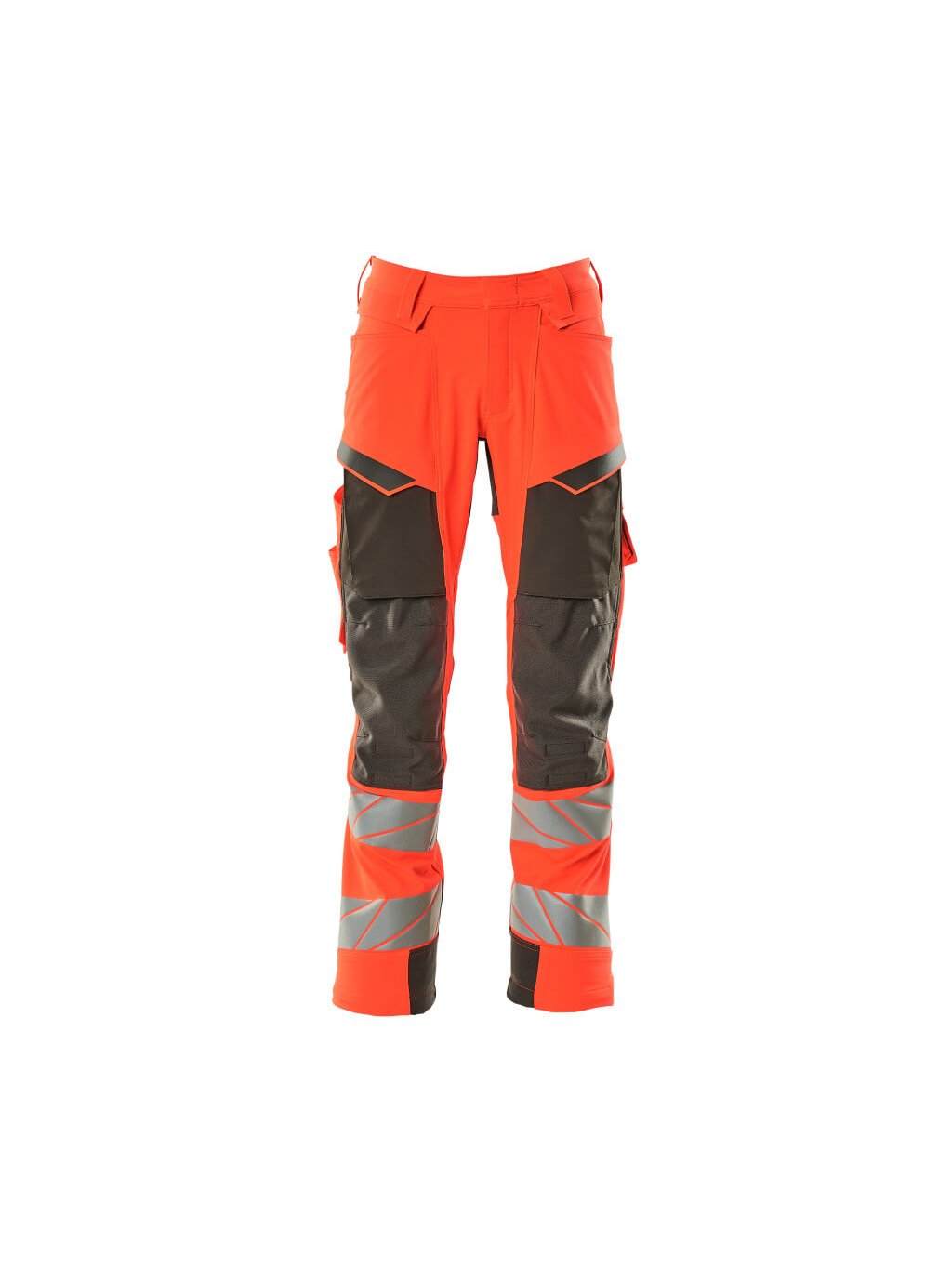Fluorescenční s odlesky. S vodoodpudivou úpravou. Dvoubarevné. Ultimátní strečová tkanina s nízkou hmotností a dobrou odolností. Dvojité prošití na nohavicích a v rozkroku. Skryté zapínání na knoflíky. Ergonomicky tvarované nohavice. Poutka na pásek. Zapínání na zip. Přední kapsy. Zesílené zadní kapsy. Skryté poutko na kladivo na pravé straně. Příprava pro závěsné kapsy 19450-126, které se zapínají na knoflíky. Sklopná kapsa na pravidla s kevlarovými® výztuhami. Kapsy s klopou na předním stehně. Kapsy na kolenou ze superodolné CORDURY® (1000 D), výškově nastavitelné. Jednoduché a individuální nastavení výšky kolenních kapes. Stehenní kapsa s podšívkou na mobilní telefon, skrytým zapínáním na druk a integrovaným pouzdrem na průkaz totožnosti. Pouzdro na průkaz totožnosti je odnímatelné. Svislý zip pro větrání na zadní straně stehna. S potiskem efektů. Délku rozkroku lze prodloužit o 3 cm rozepnutím červeného švu na vnitřní straně konce nohavice. K tomuto modelu doporučujeme následující ochranu kolen: 00418-100, 00718-100, 50451-916 nebo 20118-915. Certifikováno společně s chráničem kolen typu SHORT nebo LONG podle normy EN 14404.