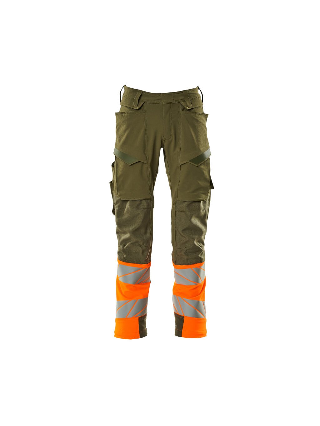 Kalhoty s kolenními kapsami Mechově zelená/Hi-vis oranžová