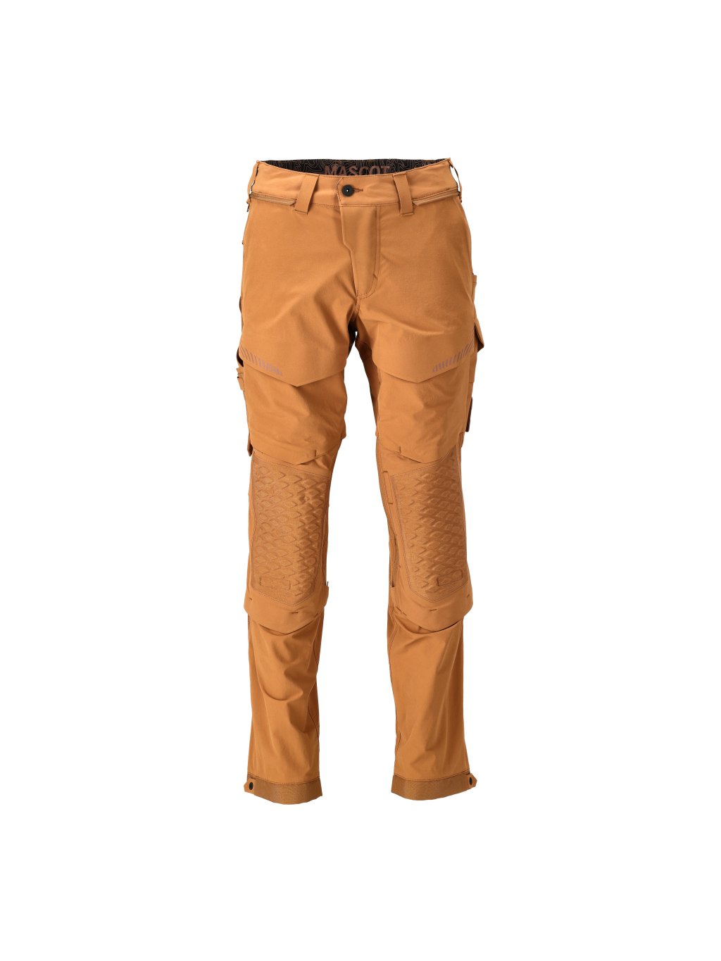 Ultimátní strečová tkanina s nízkou hmotností a vysokou odolností. S vodoodpudivou úpravou. Připraveno pro zavěšení kapes pomocí systému Click Pocket System. Dvojité a trojité prošití na nohavicích a v rozkroku. Nohavice kalhot jsou ergonomicky tvarované. Větrací otvory v zadní části kolen a v zadní části pasu. Poutka na opasek. Skryté poutko na kladivo na levé straně. Zapínání na zip. Větrací síťovina se zipem na bocích. Přední kapsy. Dvě zadní kapsy, jedna s klopou. Kapsa na pravítko vyztužená tkaninou CORDURA® a malá vnější kapsa. Knoflík (odnímatelný) pro připevnění pouzdra na nůž. Stehenní kapsa s přihrádkou na mobilní telefon, magnetickým zapínáním a integrovaným držákem na průkaz totožnosti. Pouzdro na průkaz totožnosti je odnímatelné. Kapsy s klopou na přední straně stehna. Nastavitelné a odvětrávané kolenní kapsy z vysoce odolného materiálu CORDURA®. Jednoduché a individuální nastavení výšky kolenních kapes. Nastavení pomocí stiskacích cvočků u kotníků. Reflexní efekty. K tomuto modelu doporučujeme následující ochranu kolen: 00418-100, 00718-100 nebo 20118-915. Certifikováno společně s chrániči kolen typu SHORT nebo LONG podle normy EN 14404.