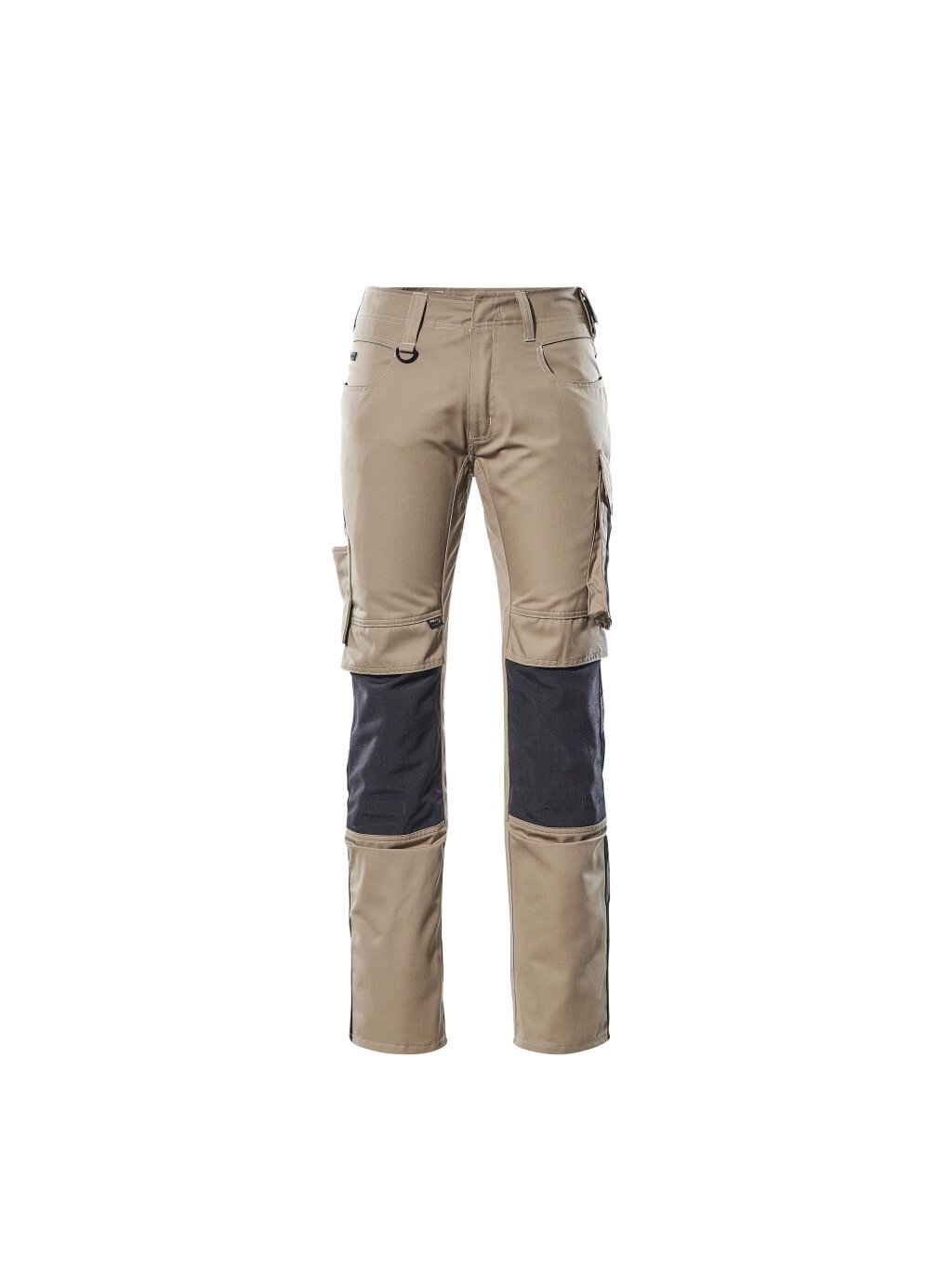 Dvoubarevné. Lehká tkanina v metráži. Trojité prošití na nohavicích a v rozkroku. Nízký pas a tvarovaný pas. Ergonomicky tvarované nohavice. Poutka na pásek. D-kroužek. Zapínání na zip. Poutko na nářadí v pase. Prostorné přední kapsy - jedna z nich má snadno přístupnou kapsu na mobilní telefon. Vyztužené zadní kapsy. Nastavitelné poutko na kladivo. Stehenní kapsa s kapsou na mobilní telefon, klopou a skrytými druky. Vyztužená kapsa na skládací pravidla. Kapsa na tužky. Kolenní kapsy ze superodolné CORDURY® (1000 D), výškově nastavitelné, s klopou a přístupem shora. Reflexní efekty. K tomuto modelu doporučujeme následující ochranu kolen: 00418-100, 00718-100, 50451-916 nebo 20118-915. Certifikováno společně s chráničem kolen typu SHORT nebo LONG podle normy EN 14404.