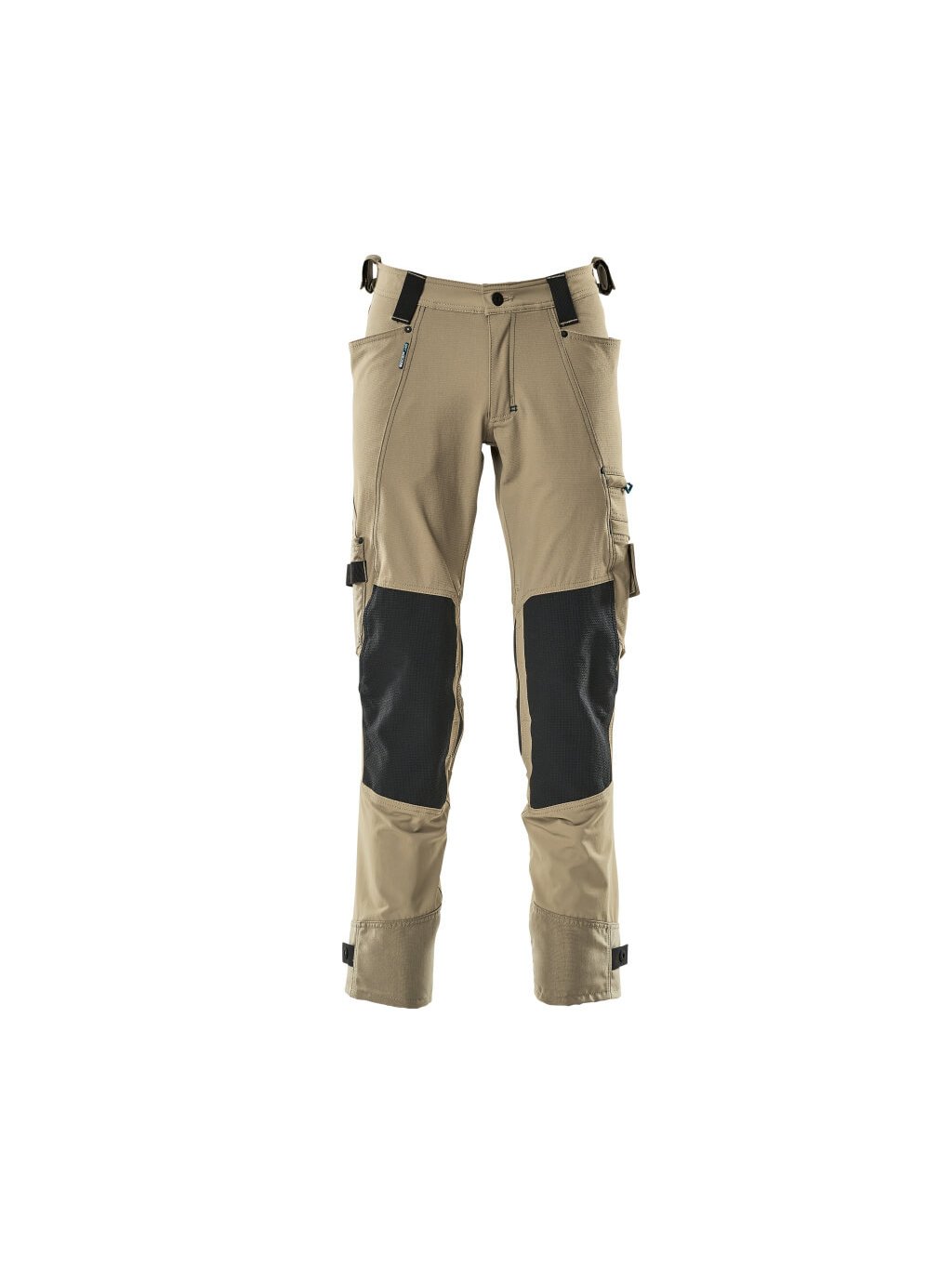 Strečová tkanina je pružná ve všech směrech a nabízí bezkonkurenční volnost pohybu, kdy nic netáhne a nepřekáží; multifunkční strečová tkanina kombinuje nízkou hmotnost s velmi vysokou odolností a je také vodoodpudivá; nízký pas s tvarovaným pasem zajišťuje, že kalhoty kopírují všechny pohyby těla; elastické kolenní kapsy jsou vyrobeny z kombinace vláken CORDURA®, Kevlar® a extrémně odolného vlákna Dyneema®.Účinné odvětrávání oblasti kolen díky otvoru na zip na vnitřní straně nohavic; standardně k dispozici ve třech různých délkách rozkroku pro co nejlepší individuální přizpůsobení a nejlépe umístěné detaily; pro optimální pohodlí doporučujeme zvolit tento chránič kolen 00718-100; certifikováno pro použití s typem chrániče kolen MASCOT SHORT nebo LONG, protože kapsa na chránič kolen je výškově nastavitelná.