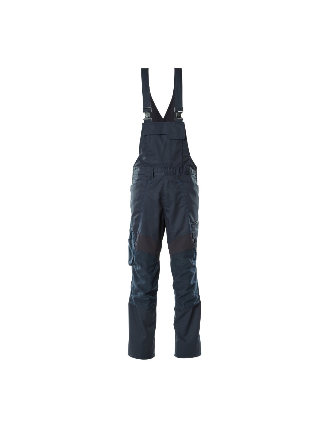 Části výrobku jsou vyrobeny ze strečové tkaniny. Kombinace lehké tkaniny kvality 442 a tkaniny ULTIMATE STRETCH kvality 511 s dvojitým prošitím na nohavicích a v rozkroku. Kapsy jsou integrovány do konstrukce. Nohavice kalhot jsou ergonomicky tvarované. Ramínka z látky, nastavitelná a s krátkým, pevným elastickým pasem a plastovými přezkami. Kapsa na náprsence s kapsou na mobilní telefon a klopou se skrytým drukem. Nastavitelný pas. Poutka na opasek. Zapínání na zip. Přední kapsy. Zadní kapsy. Stehenní kapsa s kapsou na mobilní telefon, klopou a skrytým drukem a integrovaným pouzdrem na průkaz totožnosti. Pouzdro na průkaz totožnosti je odnímatelné. Sklopná kapsa s pravidly z tkaniny CORDURA® s dalšími kapsami. Kapsy na kolenou z mimořádně odolné tkaniny CORDURA® (1000 D). Snadné a individuální nastavení výšky kolenních kapes. S potiskem a reflexními detaily. K tomuto modelu doporučujeme následující ochranu kolen: 00418-100, 00718-100, 50451-916 nebo 20118-915. Certifikováno společně s chráničem kolen typu SHORT nebo LONG podle normy EN 14404.