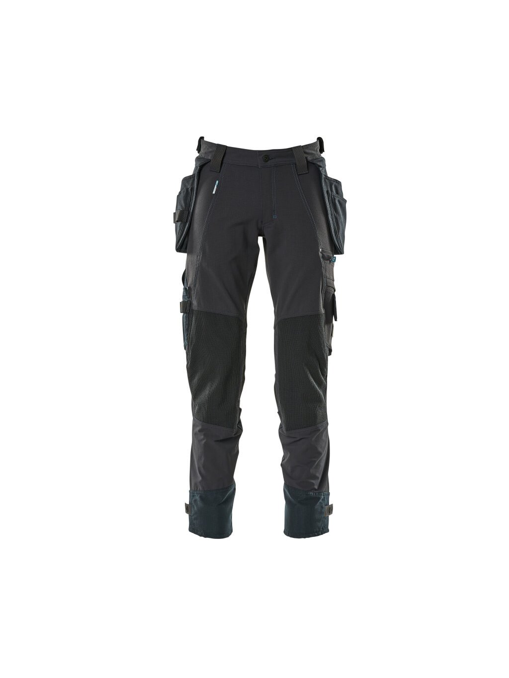 Strečová tkanina je pružná ve všech směrech a nabízí bezkonkurenční volnost pohybu, kdy nic netáhne ani nepřekáží; multifunkční strečová tkanina kombinuje nízkou hmotnost s velmi vysokou odolností a je také vodoodpudivá; dobře rozdělené závěsné kapsy z odolné tkaniny CORDURA® lze snadno odepnout pomocí zipu, když se nepoužívají, pro vyprázdnění nebo před praním kalhot.Elastické kapsy na kolena jsou vyrobeny z kombinace materiálů CORDURA®, Kevlar® a extrémně odolného vlákna Dyneema®; účinné odvětrávání oblasti kolen díky otvoru na zip na vnitřní straně nohavice; lepší viditelnost pro okolí díky reflexním efektům; pro optimální pohodlí doporučujeme zvolit tento chránič kolen 00718-100; certifikováno pro použití s chráničem kolen MASCOT typu SHORT nebo LONG, protože kapsa na chránič kolen je výškově nastavitelná.