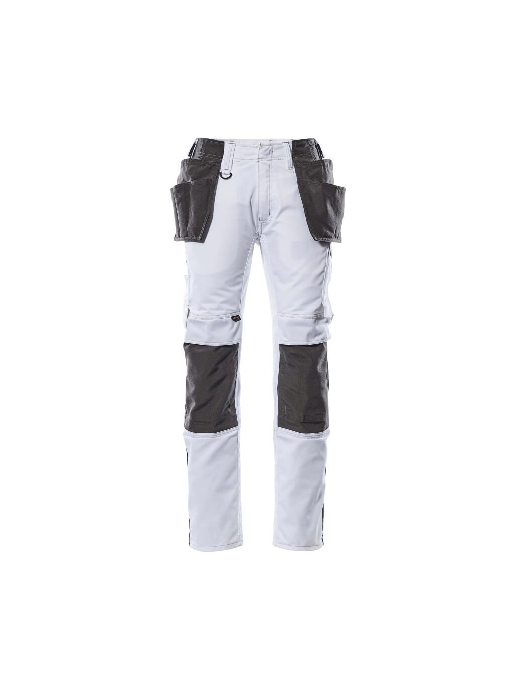 Odolné trojité prošití na nohavicích a v rozkroku prodlužuje životnost výrobku; nízký pas s tvarovaným pasem zajišťuje, že kalhoty kopírují každý pohyb těla; závěsné kapsy z tkaniny CORDURA®, nastavitelné, s další kapsou na nářadí.Kapsa na mobilní telefon integrovaná v pravé přední kapse; Kapsy na kolenou vyztužené tkaninou CORDURA®, s horním přístupem pro ochranu kolen a klopou zabraňující hromadění nečistot; Certifikováno pro použití s chrániči kolen MASCOT typu SHORT nebo LONG, protože kapsa na chrániče kolen je výškově nastavitelná.