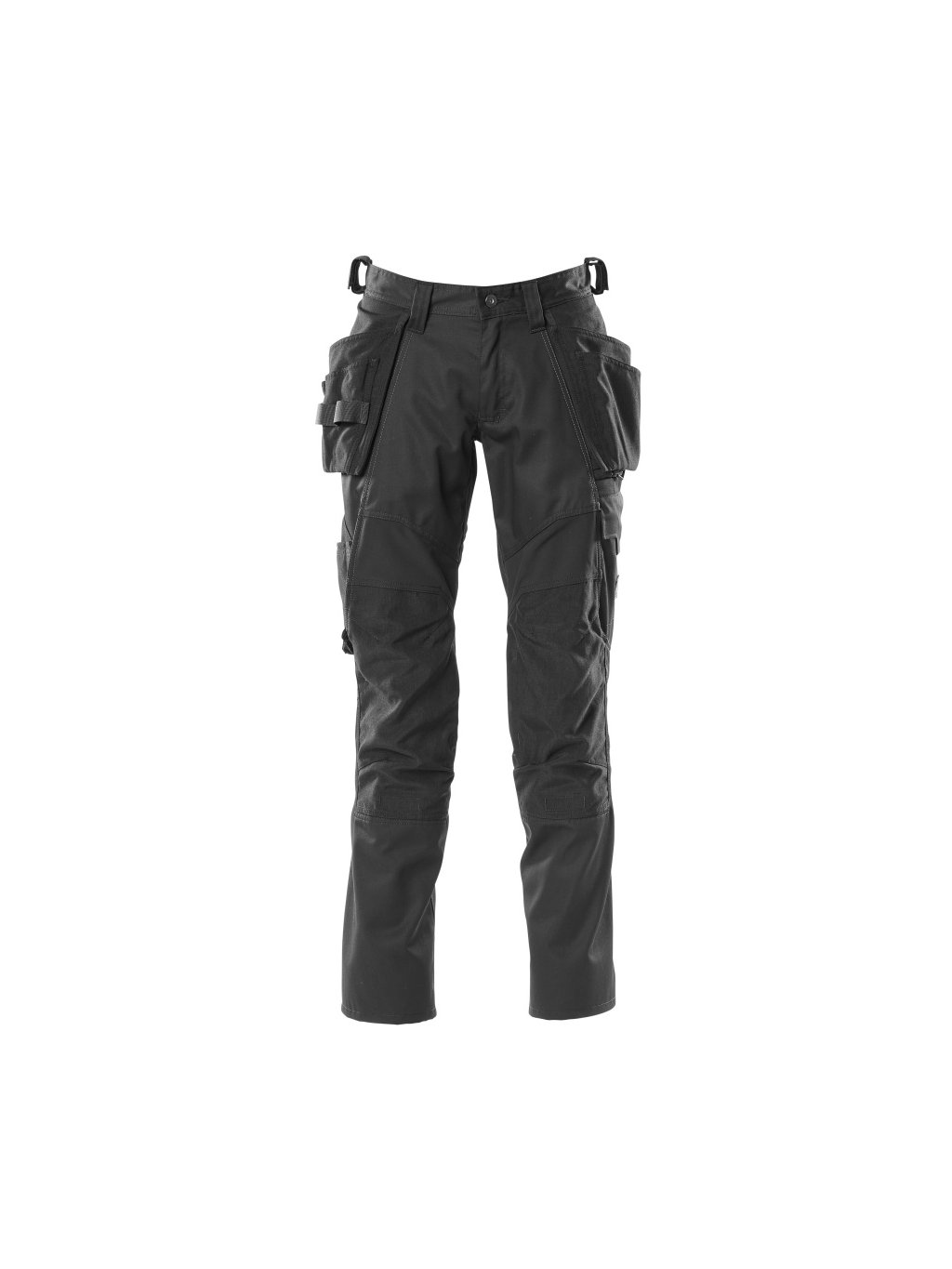Četné vsadky z elastického materiálu, které poskytují bezkonkurenční volnost pohybu; nízký pas s tvarovaným pasem zajišťuje, že kalhoty kopírují všechny pohyby těla; ergonomicky střižené nohavice, které jsou tvarované podle přirozených pohybů těla; závěsné kapsy z odolné tkaniny CORDURA®.Kapsy na kolena z odolné tkaniny CORDURA® jsou nastavitelné, takže ochrana kolen je vždy optimálně umístěna; Standardně k dispozici ve třech různých délkách rozkroku pro nejlepší individuální přizpůsobení a nejlépe umístěné detaily; Výrobek je vhodný pro průmyslové praní; Certifikováno pro použití společně s chrániči kolen MASCOT typu SHORT nebo LONG, protože kapsa na chrániče kolen je výškově nastavitelná.