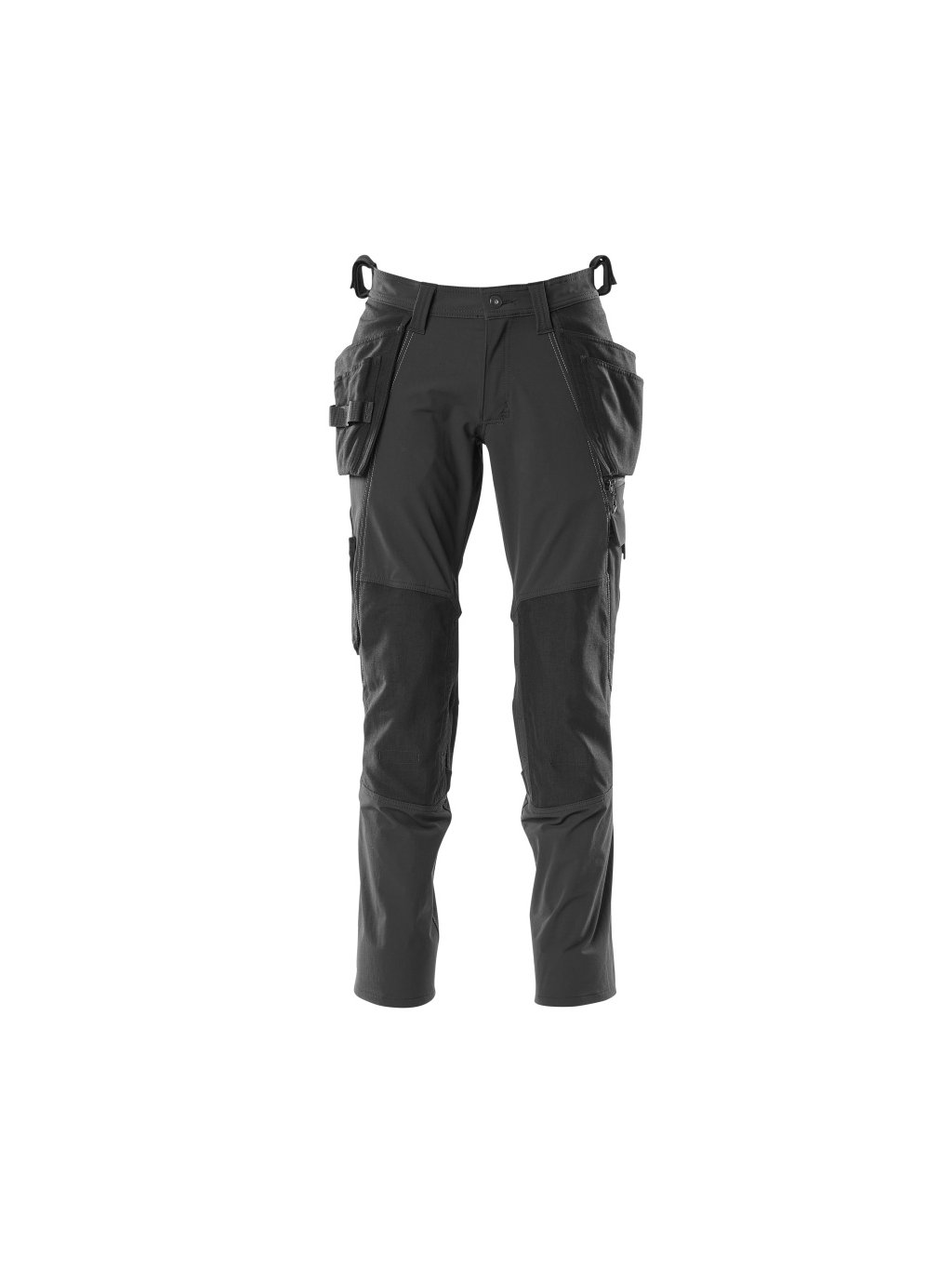 S vodoodpudivou úpravou. Ultimátní strečová tkanina s nízkou hmotností a vysokou odolností. Tkanina je téměř neznatelná na kůži, protože kapsy jsou integrovány do konstrukce. Dvojité prošití na nohavicích a v rozkroku. Nízký pas. Poutka na pásek. Ergonomicky tvarované nohavice. Zapínání na zip. Přední kapsy. Zadní kapsy. Poutka na nářadí na obou stranách pasu. Závěsné kapsy z tkaniny CORDURA®. Stehenní kapsa s přihrádkou na mobilní telefon, magnetickým zapínáním a integrovaným držákem na průkaz totožnosti. Pouzdro na průkaz totožnosti je odnímatelné. Skládací kapsa na pravidla z tkaniny CORDURA® s dalšími kapsami. Velmi odolné, odvětrávané kolenní kapsy z tkaniny CORDURA® (1000 D). Snadné a individuální nastavení výšky kolenních kapes. S potiskem a reflexními detaily. K tomuto modelu doporučujeme následující ochranu kolen: 00418-100, 00718-100, 50451-916 nebo 20118-915. Certifikováno společně s chráničem kolen typu SHORT nebo LONG podle normy EN 14404.