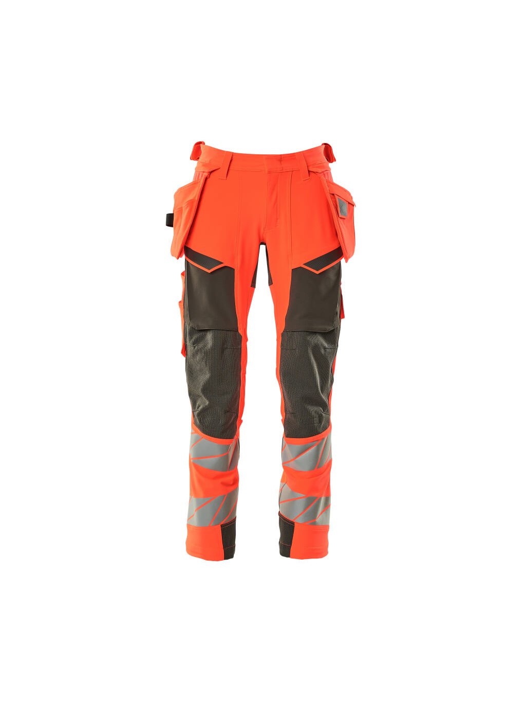 Fluorescenční s odlesky. S vodoodpudivou úpravou. Dvoubarevné. Ultimátní strečová tkanina s nízkou hmotností a dobrou odolností. Dvojité prošití na nohavicích a v rozkroku. Skryté zapínání na knoflíky. Ergonomicky tvarované nohavice. Odnímatelné závěsné kapsy. Vnitřní závěsná kapsa se zapínáním na patentku. Závěsná kapsa s podšívkou na mobilní telefon a magnetickým zapínáním. Závěsné kapsy s výztuhami z materiálu Kevlar® a CORDURA®. Poutka na opasek. Poutka na nářadí na obou stranách pasu. Zapínání na zip. Přední kapsy. Zadní kapsy, vyztužené a s klopou. Skrytá poutka na kladivo na obou stranách. Knoflík (odnímatelný) pro připevnění pouzdra na nůž. Skládací kapsa na pravidla s kevlarovými® výztuhami. Přední stehenní kapsy s klopou. Kolenní kapsy z obousměrně strečové tkaniny CORDURA® s odvětráváním. Jednoduché a individuální nastavení výšky kolenních kapes. Stehenní kapsa s podšívkou na mobilní telefon, magnetickým zapínáním a integrovaným držákem na průkaz totožnosti. Pouzdro na průkaz totožnosti je odnímatelné. Svislý zip pro větrání na zadní straně stehna. S potiskem efektů. Délku rozkroku lze prodloužit o 3 cm rozepnutím červeného švu na vnitřní straně konce nohavice. K tomuto modelu doporučujeme následující ochranu kolen: 00418-100, 00718-100, 50451-916 nebo 20118-915. Certifikováno společně s chráničem kolen typu SHORT nebo LONG podle normy EN 14404.