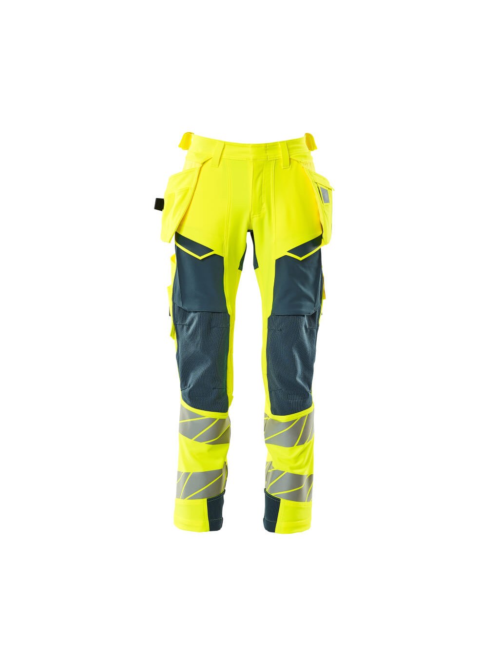 Kalhoty se závěsnými kapsami Hi-vis žlutá/tmavě petrolejová