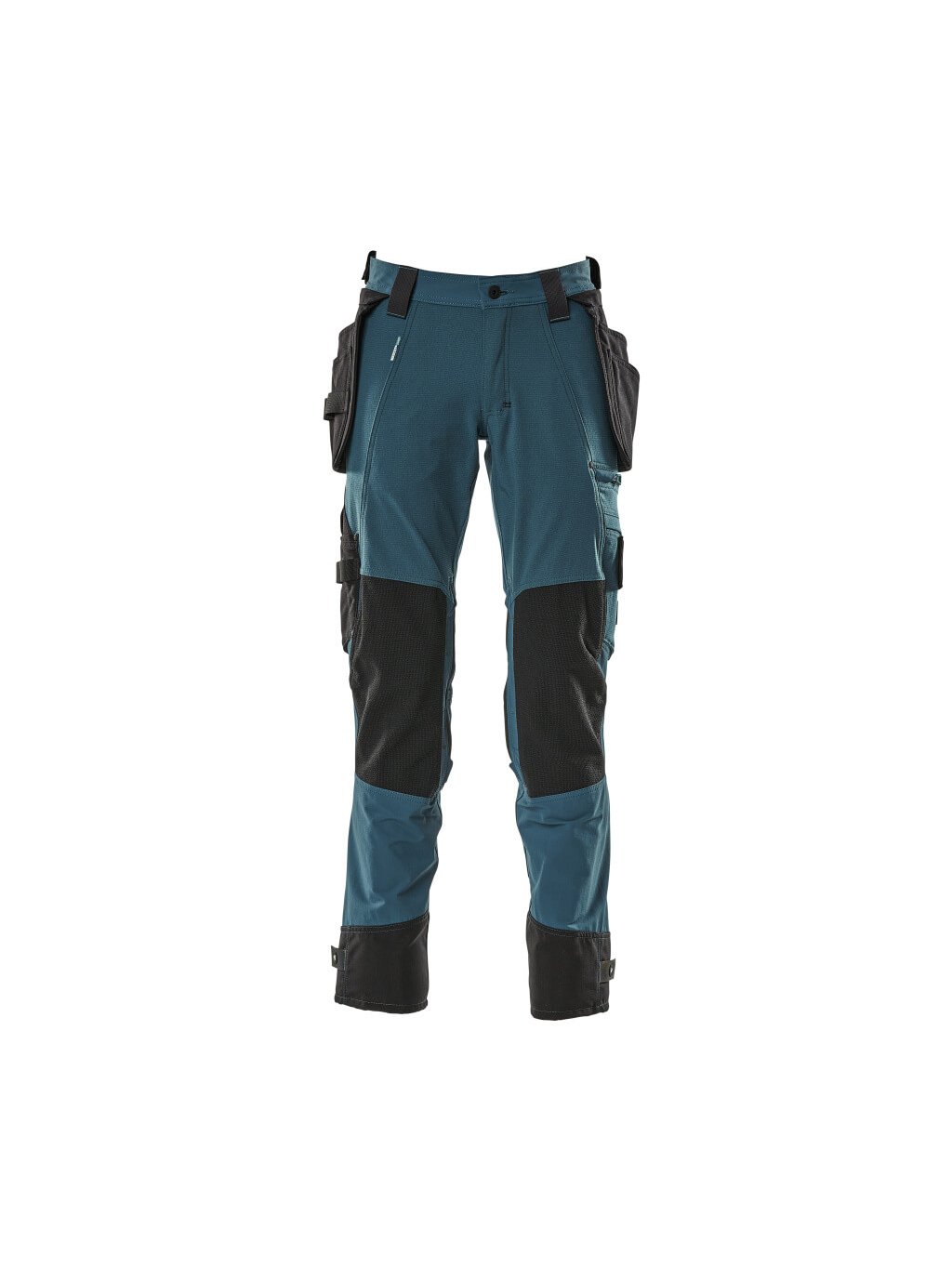 Strečová tkanina je pružná ve všech směrech a nabízí bezkonkurenční volnost pohybu, kdy nic netáhne ani nepřekáží; multifunkční strečová tkanina kombinuje nízkou hmotnost s velmi vysokou odolností a je také vodoodpudivá; dobře rozdělené závěsné kapsy z odolné tkaniny CORDURA® lze snadno odepnout pomocí zipu, když se nepoužívají, pro vyprázdnění nebo před praním kalhot.Elastické kapsy na kolena jsou vyrobeny z kombinace materiálů CORDURA®, Kevlar® a extrémně odolného vlákna Dyneema®; účinné odvětrávání oblasti kolen díky otvoru na zip na vnitřní straně nohavice; lepší viditelnost pro okolí díky reflexním efektům; pro optimální pohodlí doporučujeme zvolit tento chránič kolen 00718-100; certifikováno pro použití s chráničem kolen MASCOT typu SHORT nebo LONG, protože kapsa na chránič kolen je výškově nastavitelná.